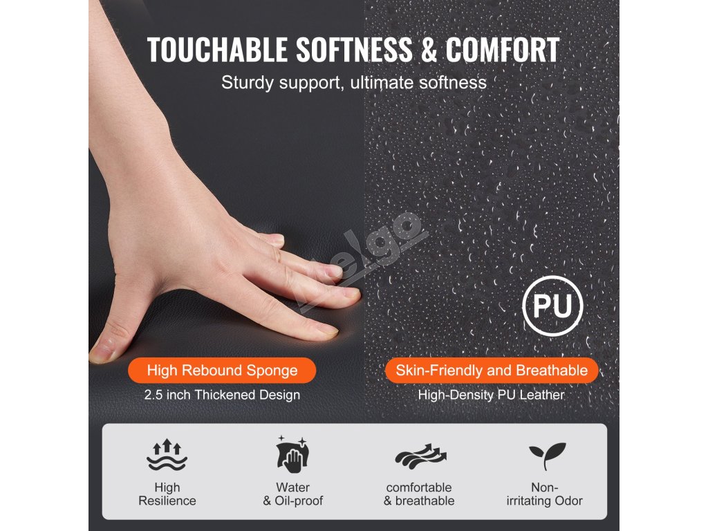 Naša starostlivo vyrobená 2,5-palcová špongia zaručuje jedinečný masážny zážitok. Skladací kozmetický tetovací stôl VEVOR, skonštruovaný na stabilitu pod tlakom a odolný voči deformácii, ponúka pevnú oporu vďaka svojej pružnosti s vysokou hustotou a dlhotrvajúcemu odrazu.