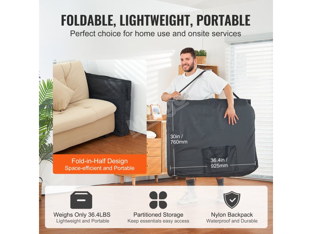 Zažite dokonalú kombináciu sily a pohodlia s profesionálnym masážnym stolom VEVOR 30" W. Tento skladací masážny stôl pre náročné použitie, vyrobený z bukového dreva a zosilnenej preglejky, sa môže pochváliť nosnosťou 750 kg, pričom zostáva ľahký a prenosný s hmotnosťou len 36,4 kg.