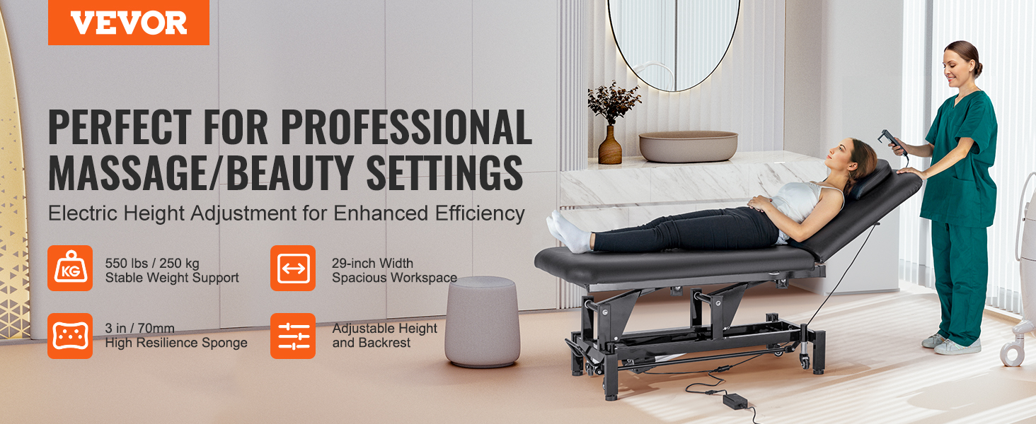 Zažite individuálnu relaxáciu s elektrickým masážnym stolom VEVOR, ktorý ponúka flexibilné nastavenie výšky od 20" do 31,5" a presné polohovanie operadla od 0 do 45 stupňov pre optimálne pohodlie. Náš motorizovaný masážny stôl je skonštruovaný tak, aby vydržal a ľahko sa udržiaval, a zaručuje dlhodobý výkon a pohodlie.