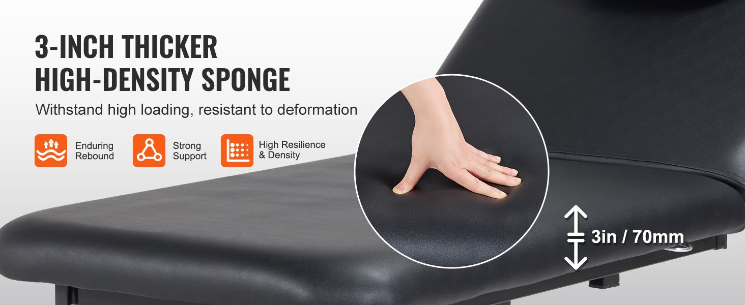 Naša starostlivo vyrobená 3-palcová špongia zaručuje jedinečný zážitok z masáže. Elektrická masážna posteľ VEVOR Spa, skonštruovaná na stabilitu pod tlakom a odolná voči deformácii, ponúka pevnú oporu vďaka svojej pružnosti s vysokou hustotou a dlhotrvajúcemu odrazu.