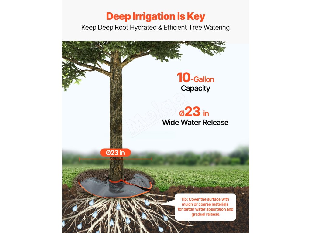 Nie je potrebné opakované ručné zavlažovanie. Tieto vrecia vám ušetria čas, námahu a vodu, čím zabezpečia účinnú hydratáciu vašich stromov a zároveň minimalizujú zbytočné plytvanie vodou. Zabezpečujú včasné zavlažovanie na podporu zdravého rastu.