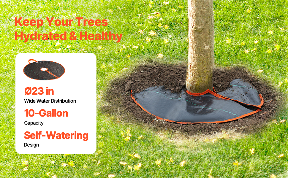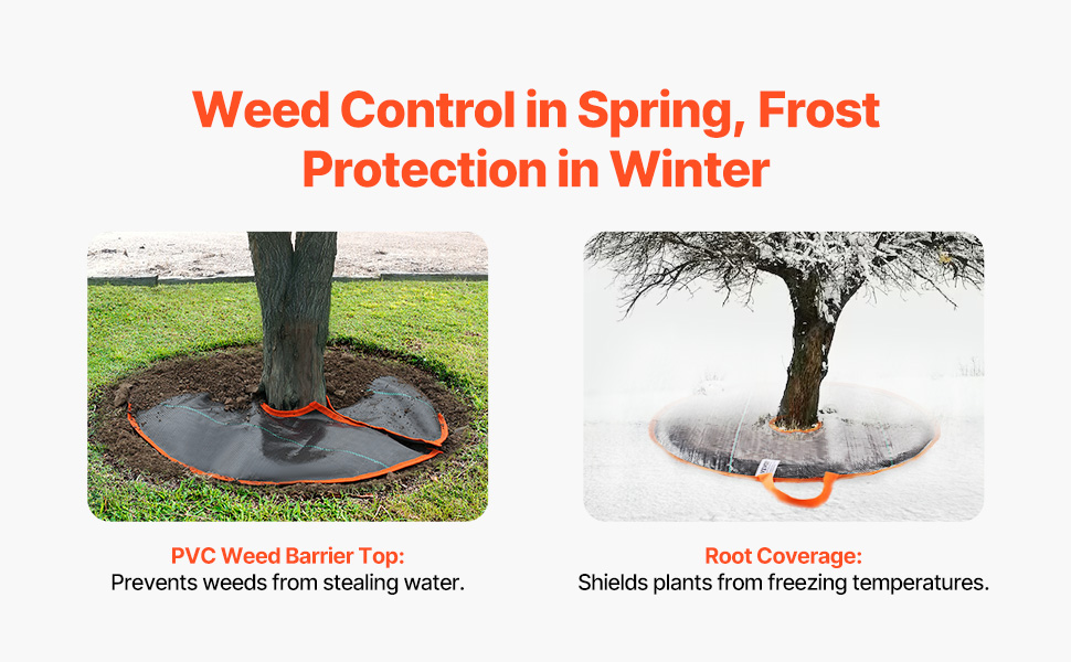 Vrchná časť vreca na zalievanie stromov je vyrobená z tkaniny odolnej voči burine, ktorá pomáha obmedziť rast buriny na jar a v lete a zabraňuje iným rastlinám kradnúť vodu. V zime pomáha chrániť korene stromov pred teplotami pod bodom mrazu.