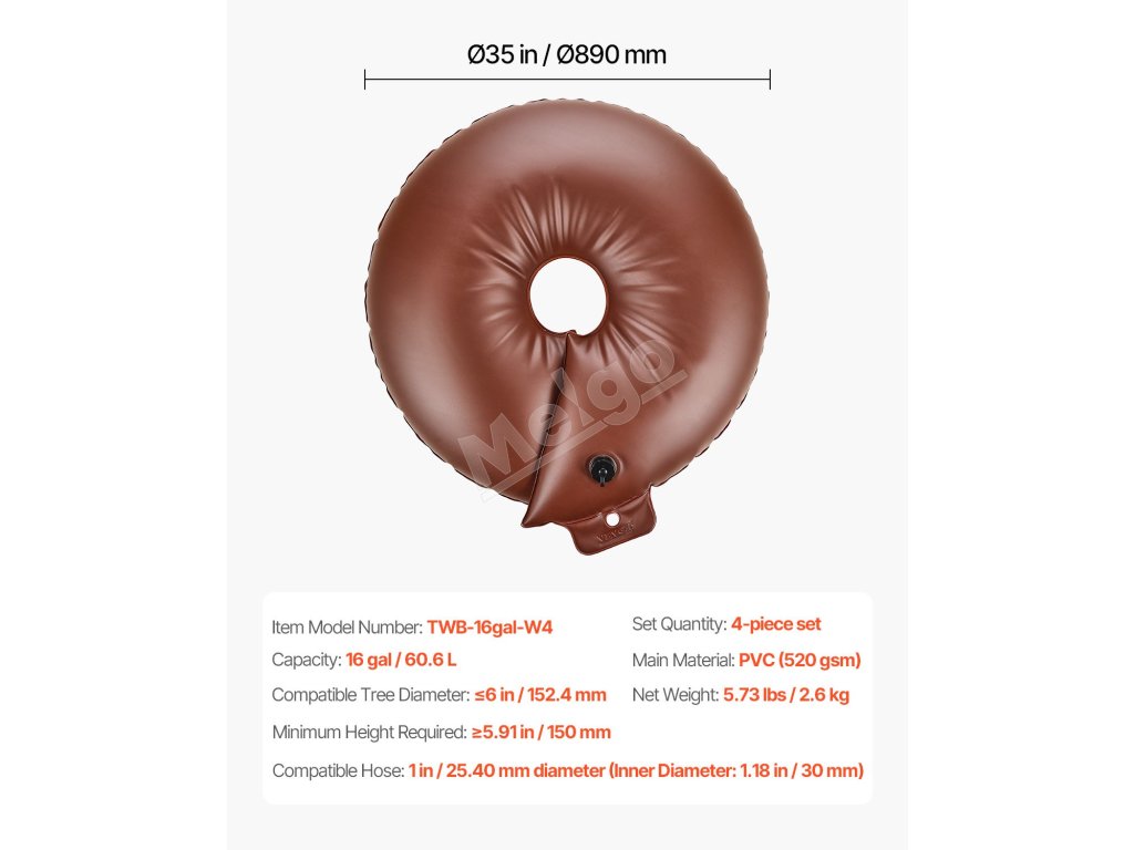 Tento zalievací krúžok poskytuje spoľahlivú hydratáciu pre novovysadené stromy alebo stromy citlivé na sucho. S kapacitou 16 galónov (60,6 l) uvoľňuje vodu pomaly v priebehu 5 až 8 hodín a vyživuje korene stromov. Znižuje potrebu častého ručného zavlažovania, čím šetrí vodu, čas, námahu a peniaze.