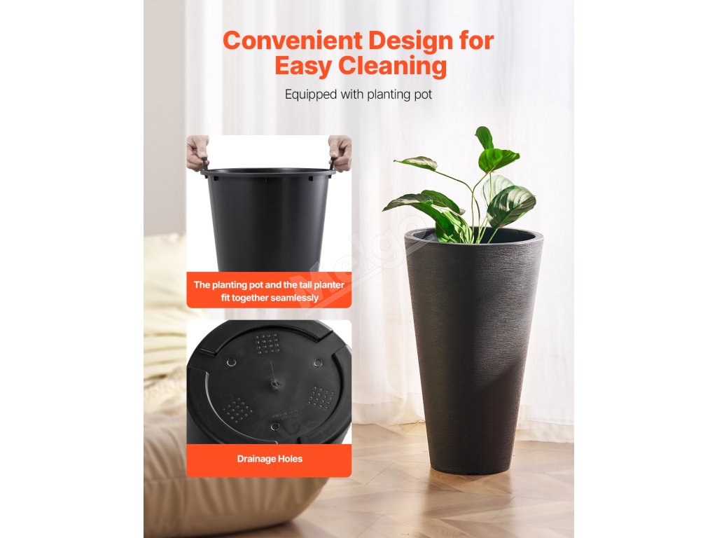 S týmto vysokým kvetináčom je záhradníčenie jednoduché a zábavné! Jeho flexibilný dizajn a ľahko uchopiteľné rukoväte uľahčujú čistenie rastlín v kvetináčoch alebo záhradkárčenie v pôde. Je to váš ideálny záhradný spoločník pre ekologickejší a príjemnejší životný štýl.