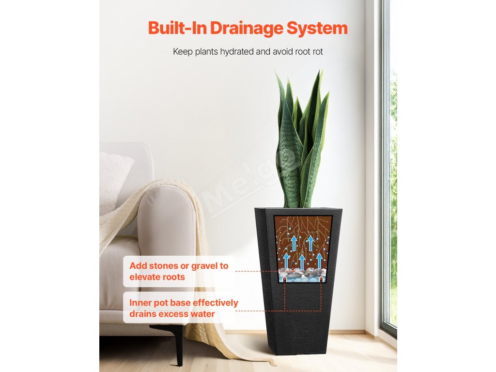 Sada 2 vysokých kvetináčov 22inch čierne zúžené štvorcové s odtokom