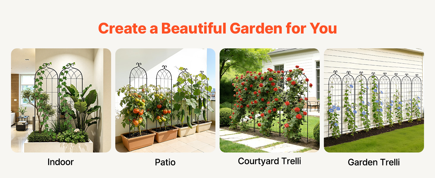 Táto záhradná mreža na ruže, navrhnutá na podporu rôznych popínavých rastlín a popínavých zelenín, poskytuje rastlinám priestor na silný a vzpriamený rast. Je ideálna pre popínavé ruže, brečtan, plamienok, jazmín, povojníky, uhorky, paradajky, hrach a ďalšie rastliny.