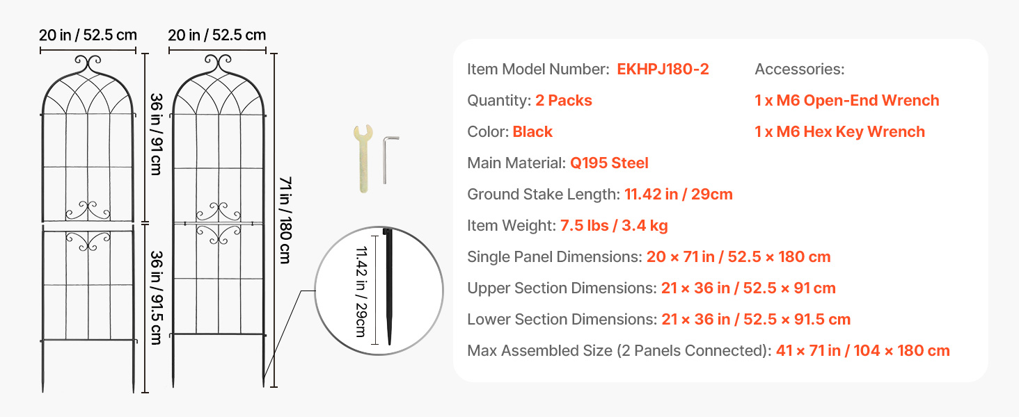 Každý panel mreže na popínavé plamienky sa dodáva v dvoch častiach, ktoré sa rýchlo zmontujú pomocou priloženého kľúča a skrutiek. Vstavané uzamykacie spojky vám umožňujú spojiť viacero panelov a flexibilne nastaviť uhly, vďaka čomu je jednoduché vytvoriť ideálny tvar pre rozloženie vašej záhrady.