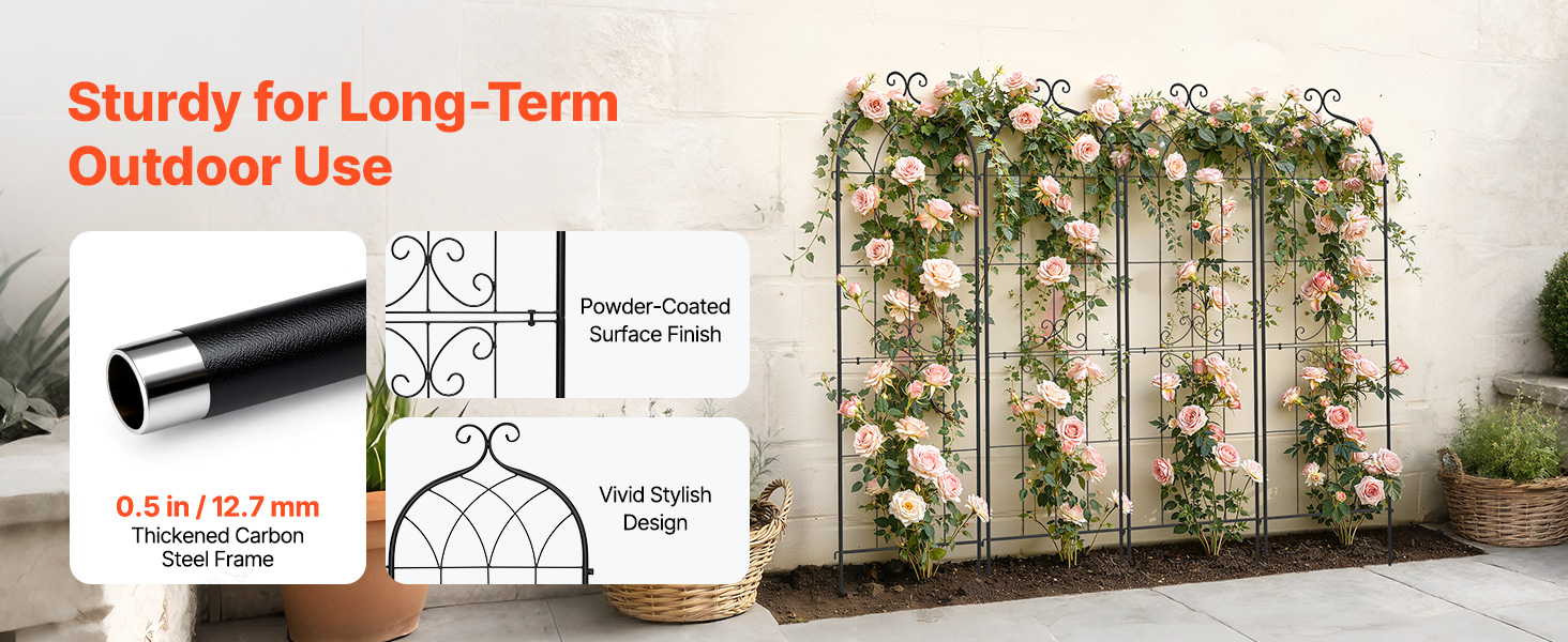 Rozlúčte sa s neporiadkom v záhrade. Táto 2-dielna oceľová mreža na ruže dodáva štruktúru a šarm vďaka svojmu jemne oblúkovému dizajnu, ktorý sa dokonale začlení do akejkoľvek krajiny. Poskytuje dostatočnú vertikálnu oporu pre kvety, popínavé rastliny a zeleninu, aby mohli rásť a šplhať sa.
