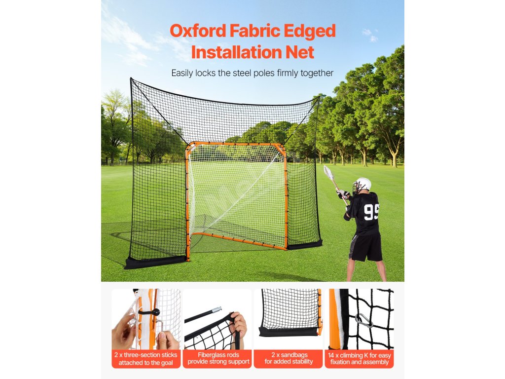 Túto prenosnú lakrosovú sieť možno ľahko postaviť, rozložiť, uskladniť a prepravovať. Jej užívateľsky prívetivý dizajn umožňuje rýchle zostavenie podľa požiadaviek na hru alebo tréning, čím ponúka flexibilitu bez obmedzenia miestom konania.