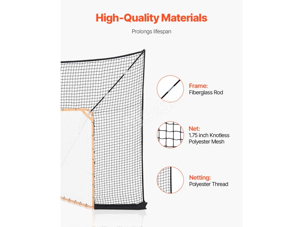 Toto lakrosové tréningové vybavenie je vyrobené z kvalitných materiálov vrátane pevnej polyesterovej siete bez uzlov a polyesterových šnúr.