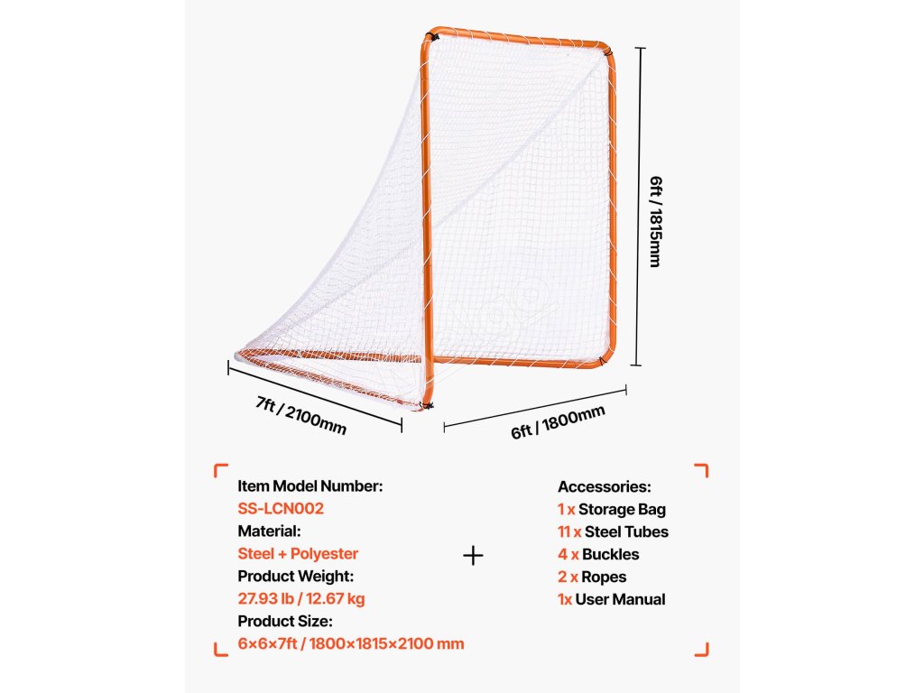 Lacrosse bránka 6'×6' oceľový rám, prenosná, s taškou, oranžová