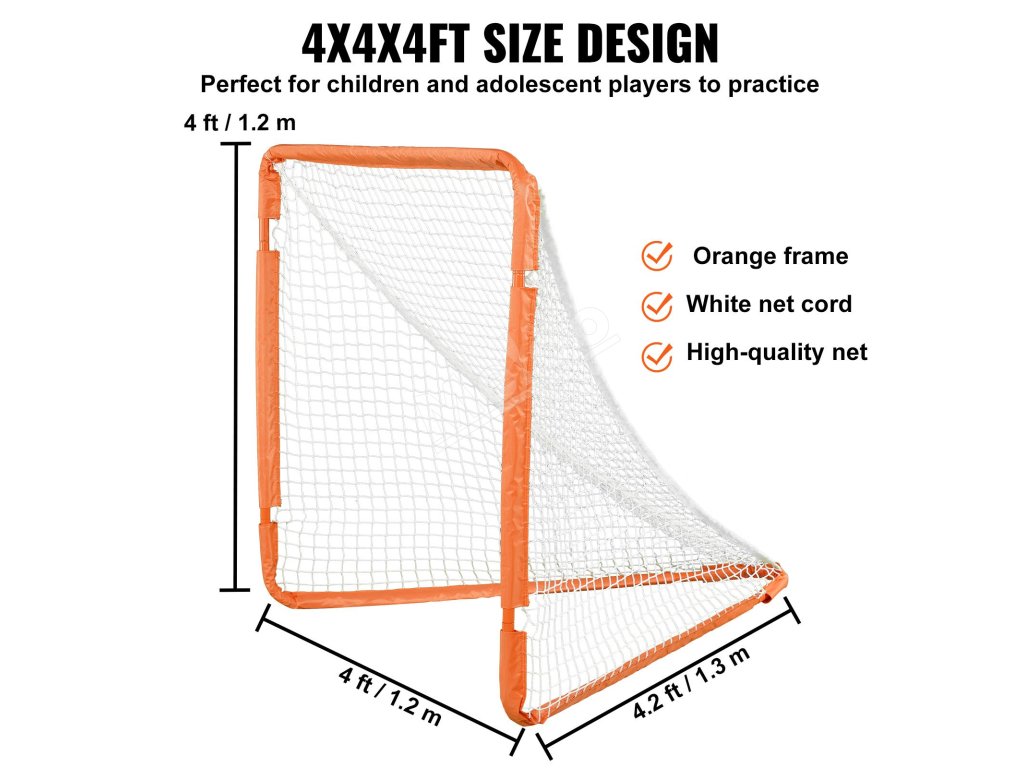 Táto lakrosová bránka na dvore obsahuje rám a sieť. S rozmermi 4x4x4 stopy je špeciálne navrhnutá pre mladých hráčov. Dizajn nielenže zodpovedá ostatnému vybaveniu alebo miestam rovnakého štandardu, ale umožňuje aj štandardizované plánovanie a usporiadanie ihriska.