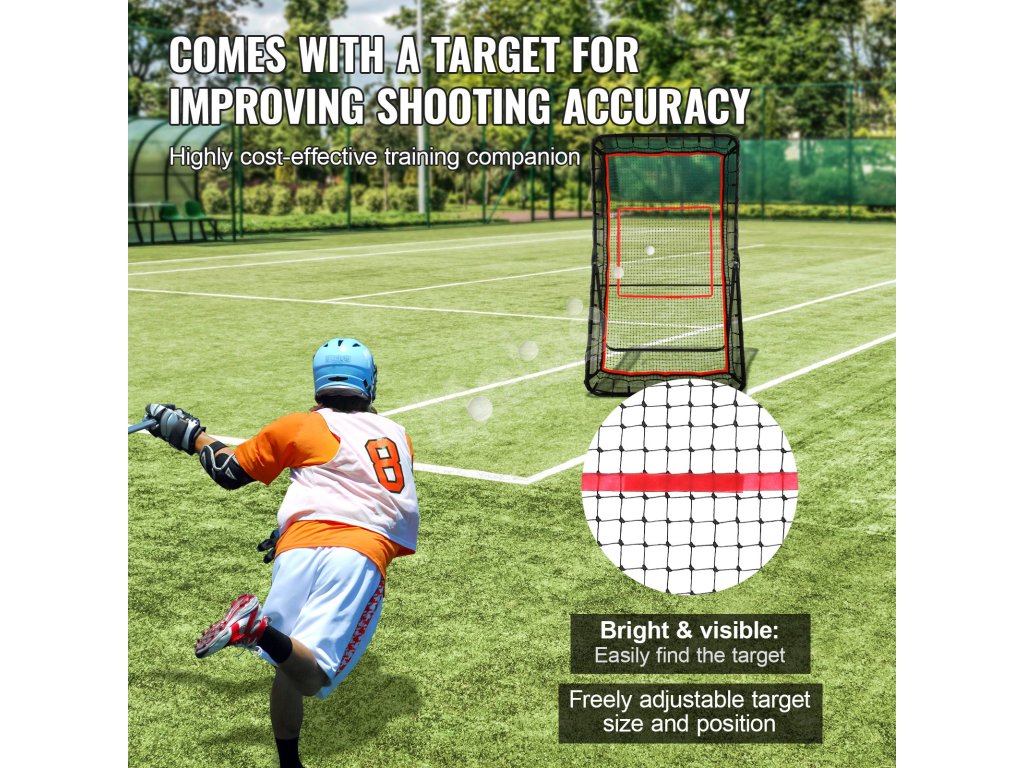 Náš lakrosový odbíjač vyrobený z vetruvzdorného a nepremokavého materiálu je vhodný na vonkajšie použitie. Tesne pletená PE sieť v kombinácii s povrchovou úpravou odolnou voči UV žiareniu zaručuje odolnosť. Okraj odrazovej tkaniny z PVC ponúka vynikajúcu pružnosť. Je to základná tréningová pomôcka pre začiatočníkov.
