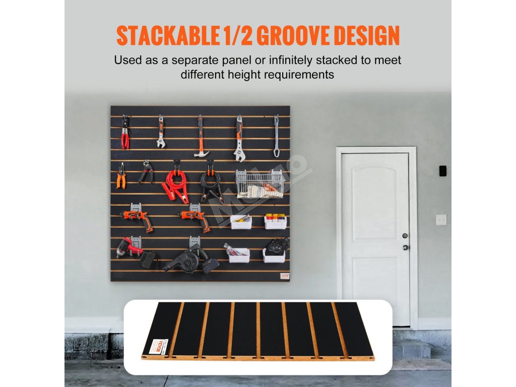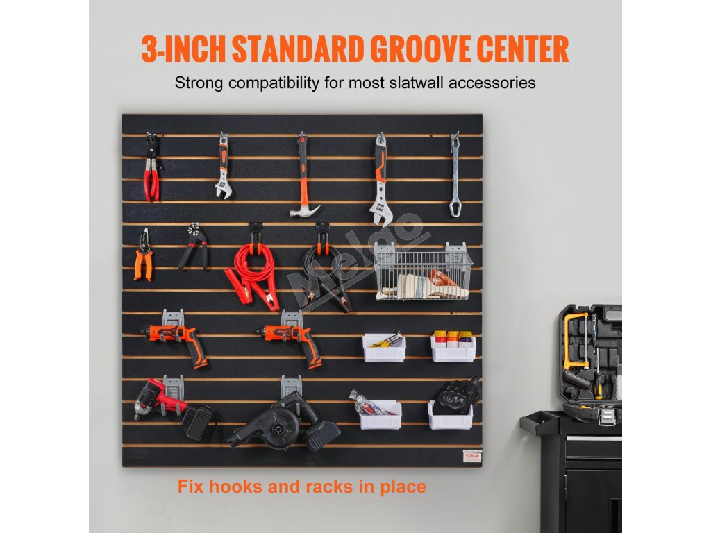 Pripravte sa na kombinovanie, prispôsobenie a očarenie vďaka univerzálnemu dizajnu drážok našich lamelových panelov. Rozstup drážok 3 palce nabáda k rôznym háčikom, vďaka čomu budú vaše steny elegantné, čisté a bez otravných skrutiek a klincov.