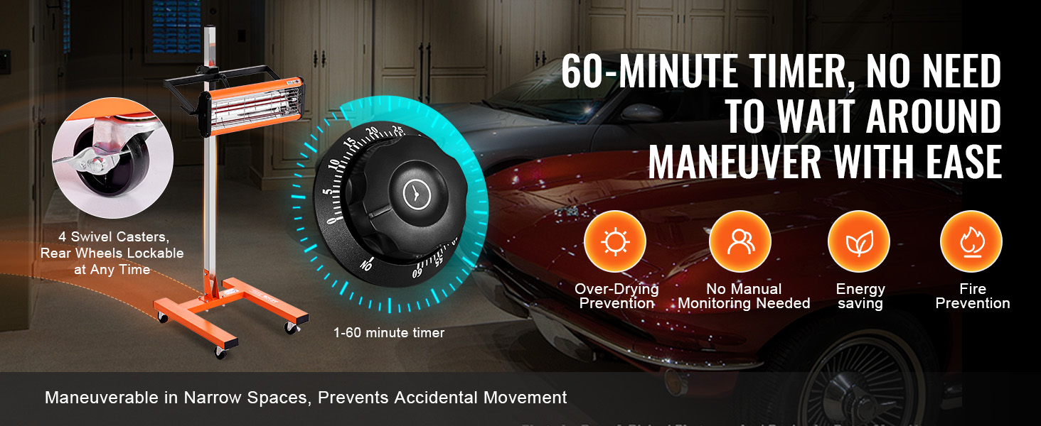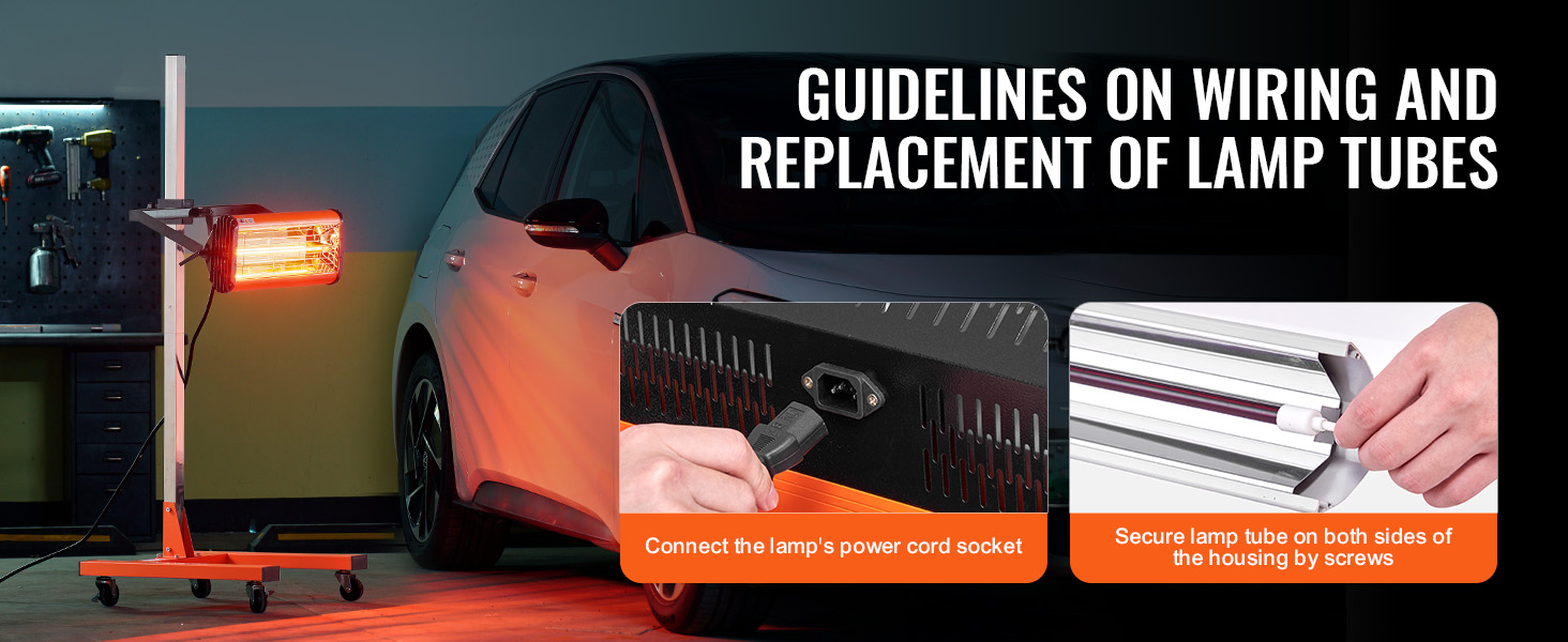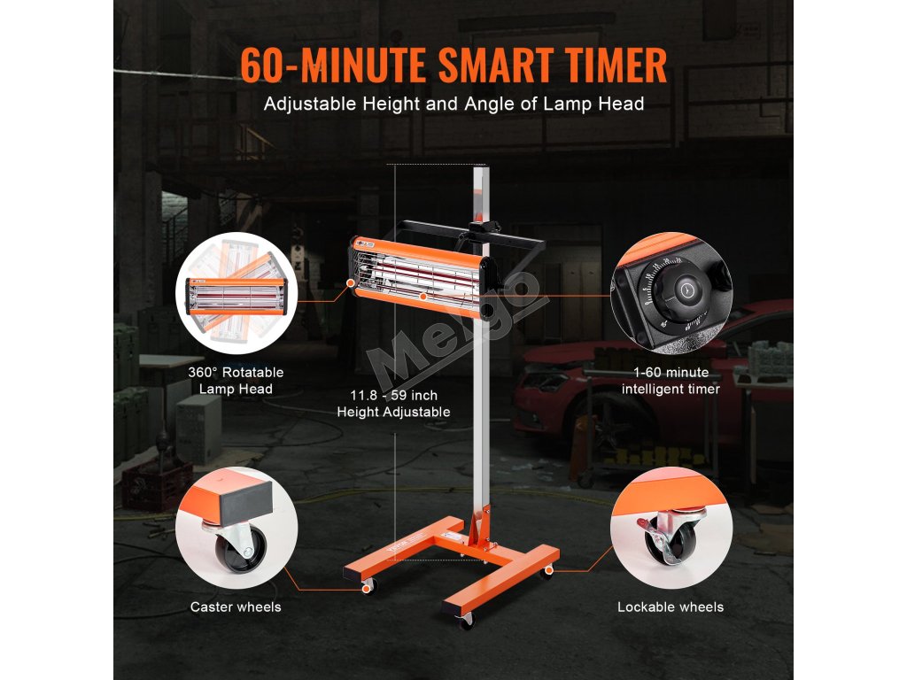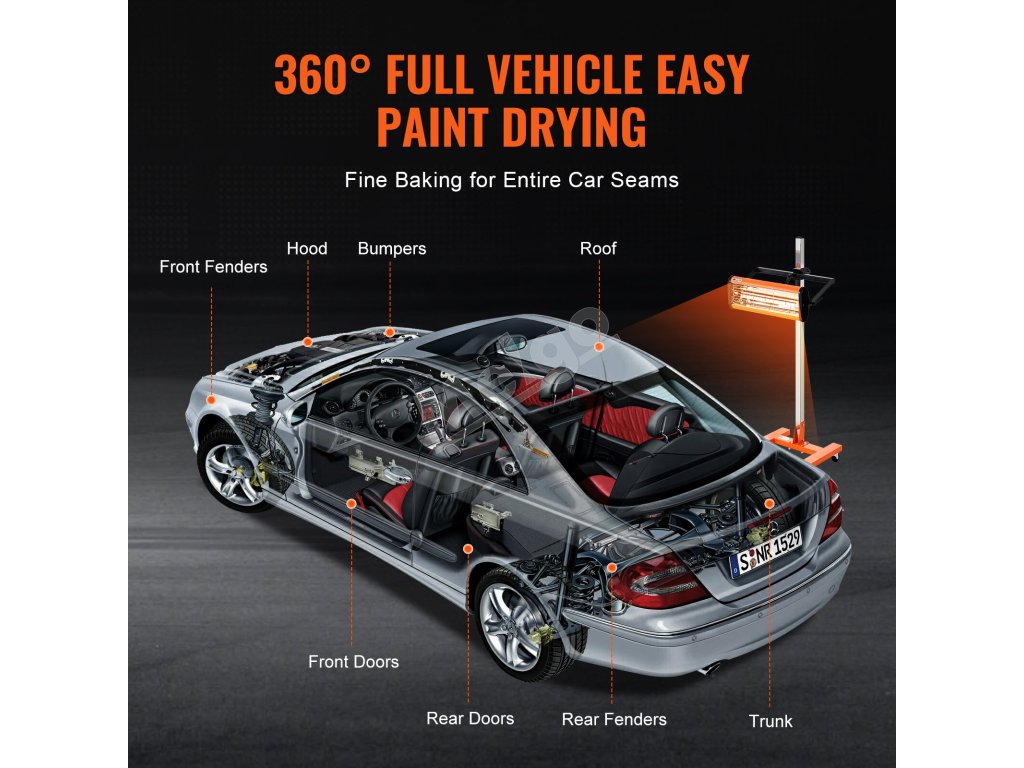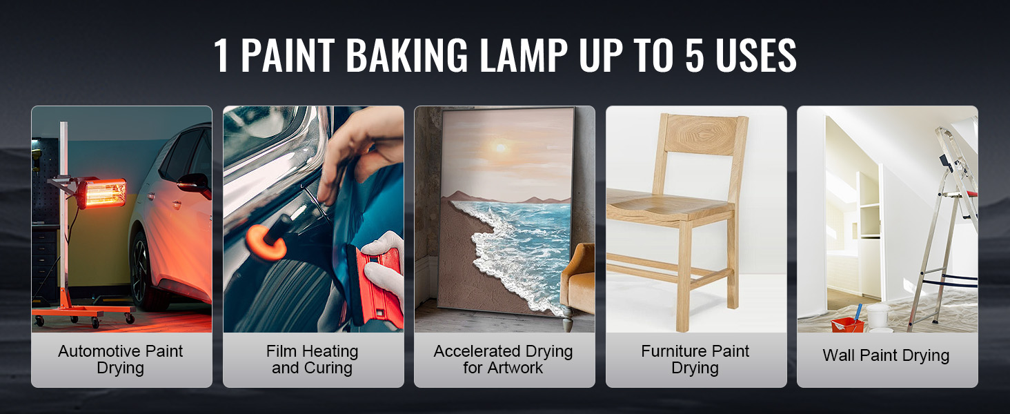 Táto lampa na sušenie farby je vhodná na sušenie automobilov, nábytku a obrazov. Vyznačuje sa rýchlym schnutím, bezpečnosťou a odolnosťou. Je vybavená rôznymi praktickými funkciami, ľahko sa ovláda a je ideálnou voľbou pre všetky vaše potreby sušenia.