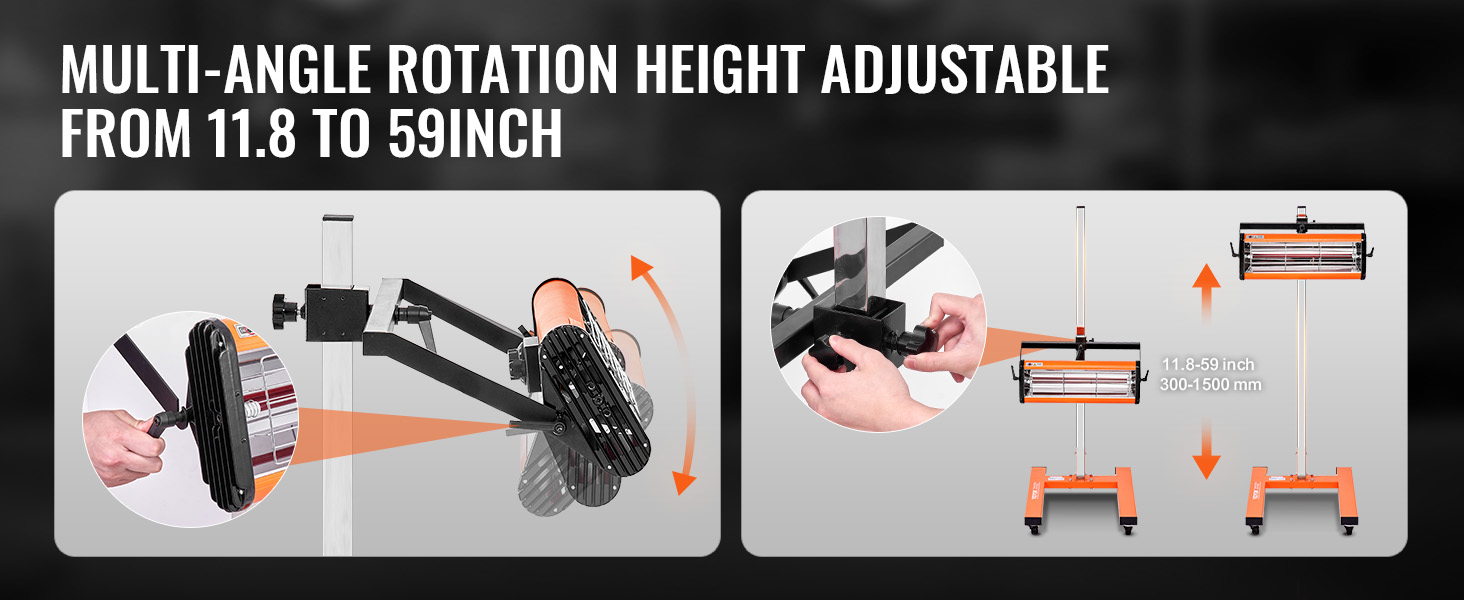 Umožňuje otáčanie pod viacerými uhlami na flexibilné sušenie farby. Výšku možno ľubovoľne nastaviť podľa rôznych pracovných potrieb, čím je obsluha pohodlnejšia.