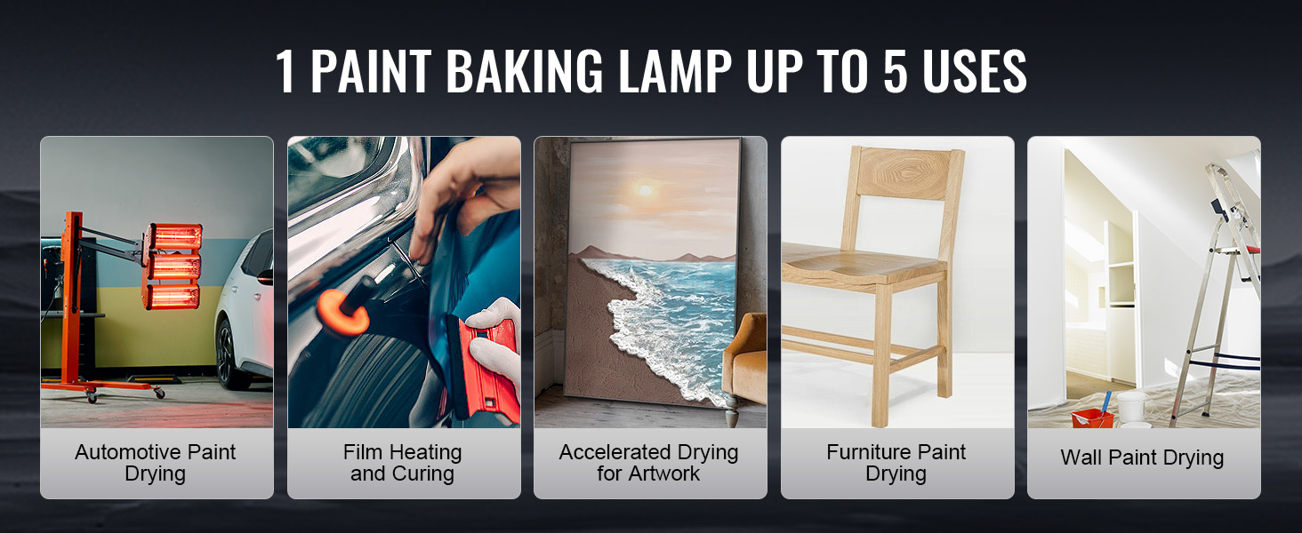 Táto lampa na sušenie farby je vhodná na sušenie automobilov, nábytku a obrazov. Vyznačuje sa rýchlym schnutím, bezpečnosťou a odolnosťou. Je vybavená rôznymi praktickými funkciami, ľahko sa ovláda a je ideálnou voľbou pre všetky vaše potreby sušenia.
