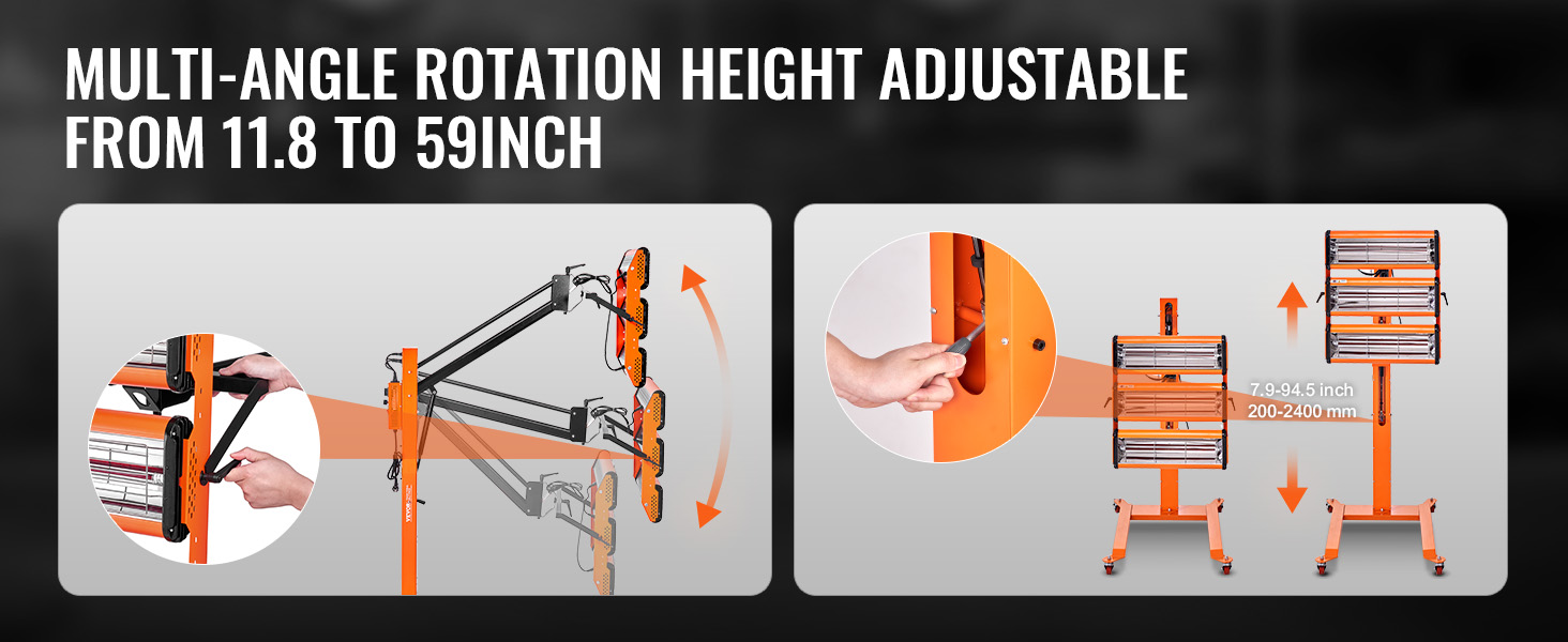 Umožňuje otáčanie pod viacerými uhlami na flexibilné sušenie farby. Hydraulický zdvihák na voľne nastaviteľnú výšku, vyhovujúci rôznym pracovným potrebám pre pohodlnejšiu prevádzku.
