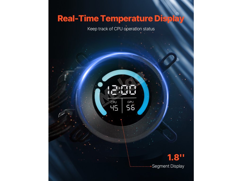 Aio chladič cpu 120mm pwm s pumpou, 1 ventilátor 1.8" displej, 2200rpm