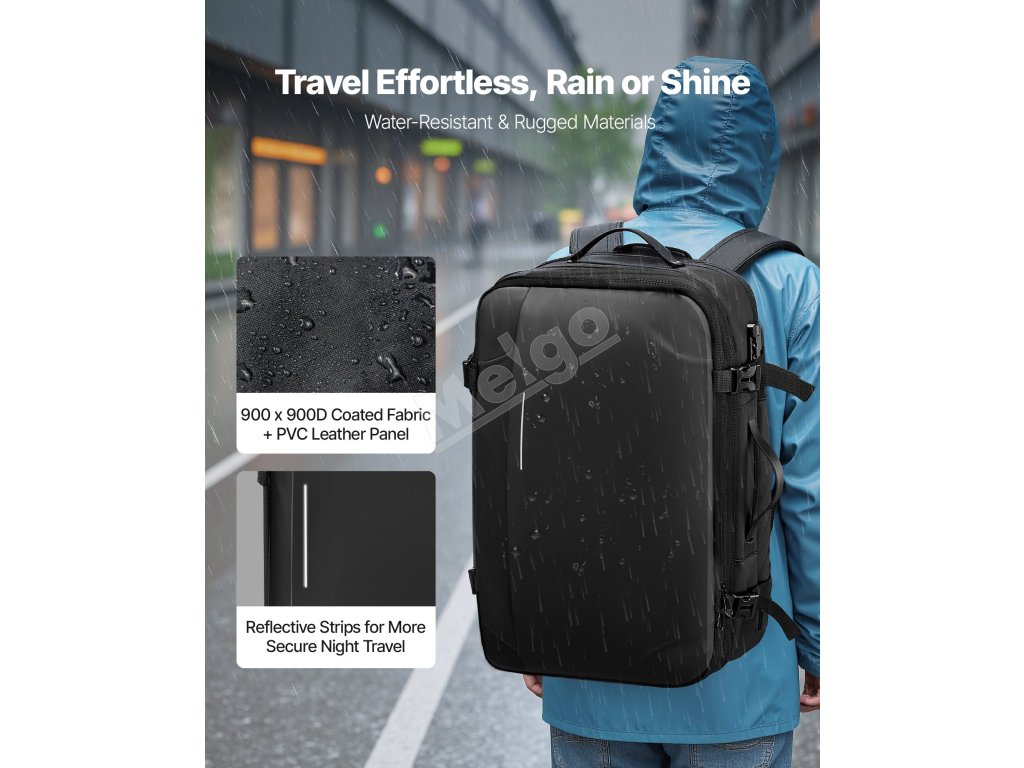 Cestovný batoh s vákuovým tesnením ľahko usporiada oblečenie, obuv, prípravky na starostlivosť o pleť, opaľovací krém, elektronické zariadenia a ďalšie predmety. Oddelenie mokrých a suchých vecí udržiava vaše veci čisté a upratané.