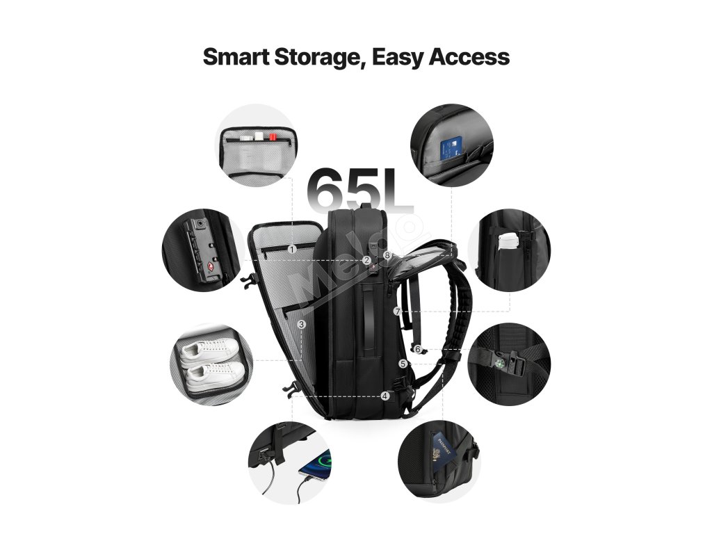 Vakuový cestovný batoh 65L, rozšíriteľný s pumpou a TSA zámkom
