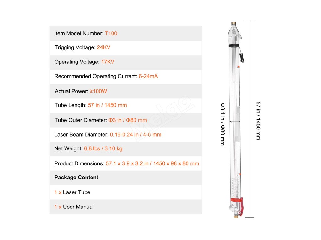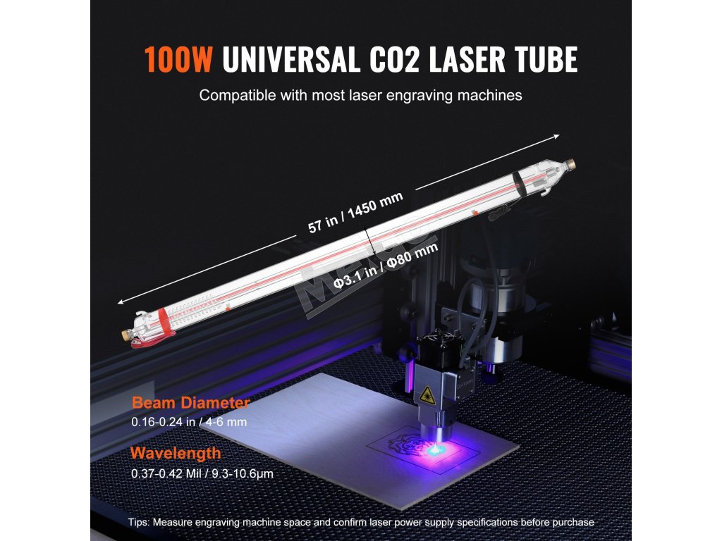 VEVOR 100W CO2 laserová trubica, dĺžka 57" (1450 mm)