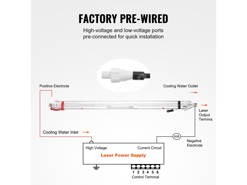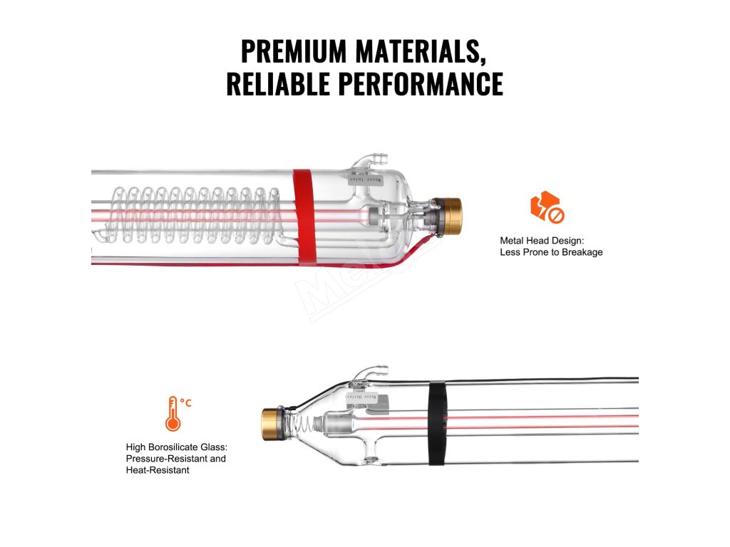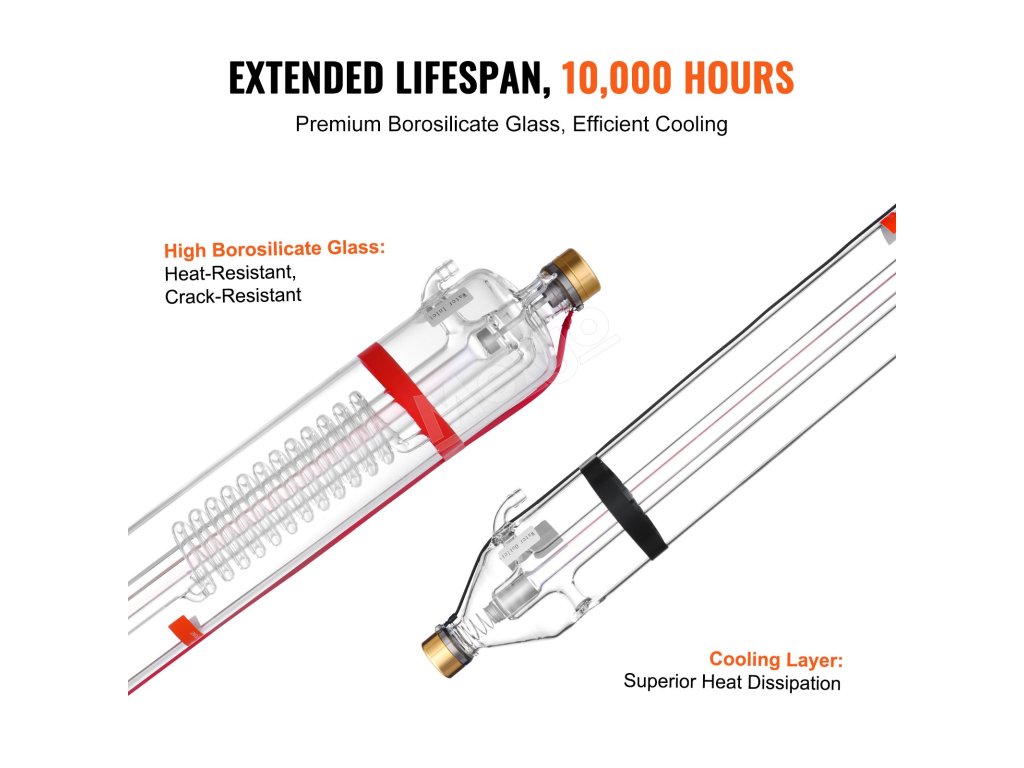 Naša CO2 laserová trubica poskytuje vysoko presné spracovanie pomocou režimu TEM00 s priemerom lúča 0,16"-0,24" (4-6 mm). S priemerom 3,1" (80 mm) a hermeticky uzavretým puzdrom z borosilikátového skla je kompatibilná s rôznymi značkami laserových gravírovacích strojov. Užite si životnosť 10 000 hodín!