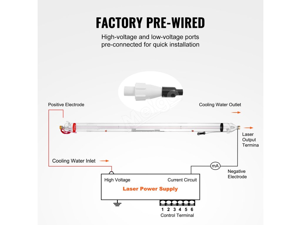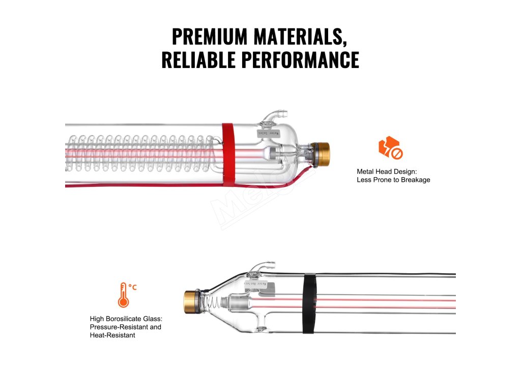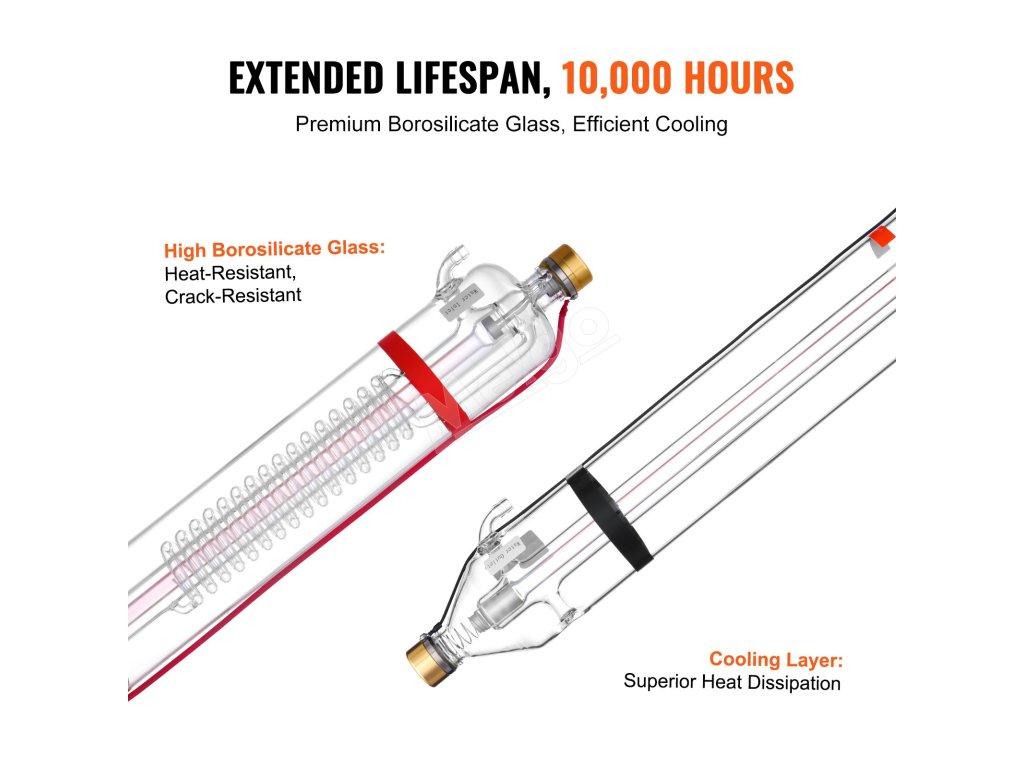 Naša CO2 laserová trubica poskytuje vysoko presné spracovanie pomocou režimu TEM00 s priemerom lúča 0,2"-0,28" (5-7 mm). S priemerom 3,1" (80 mm) a hermeticky uzavretým puzdrom z borosilikátového skla je kompatibilná s rôznymi značkami laserových gravírovacích strojov. Užite si životnosť 10 000 hodín!