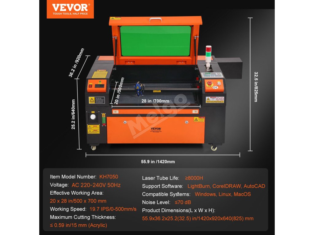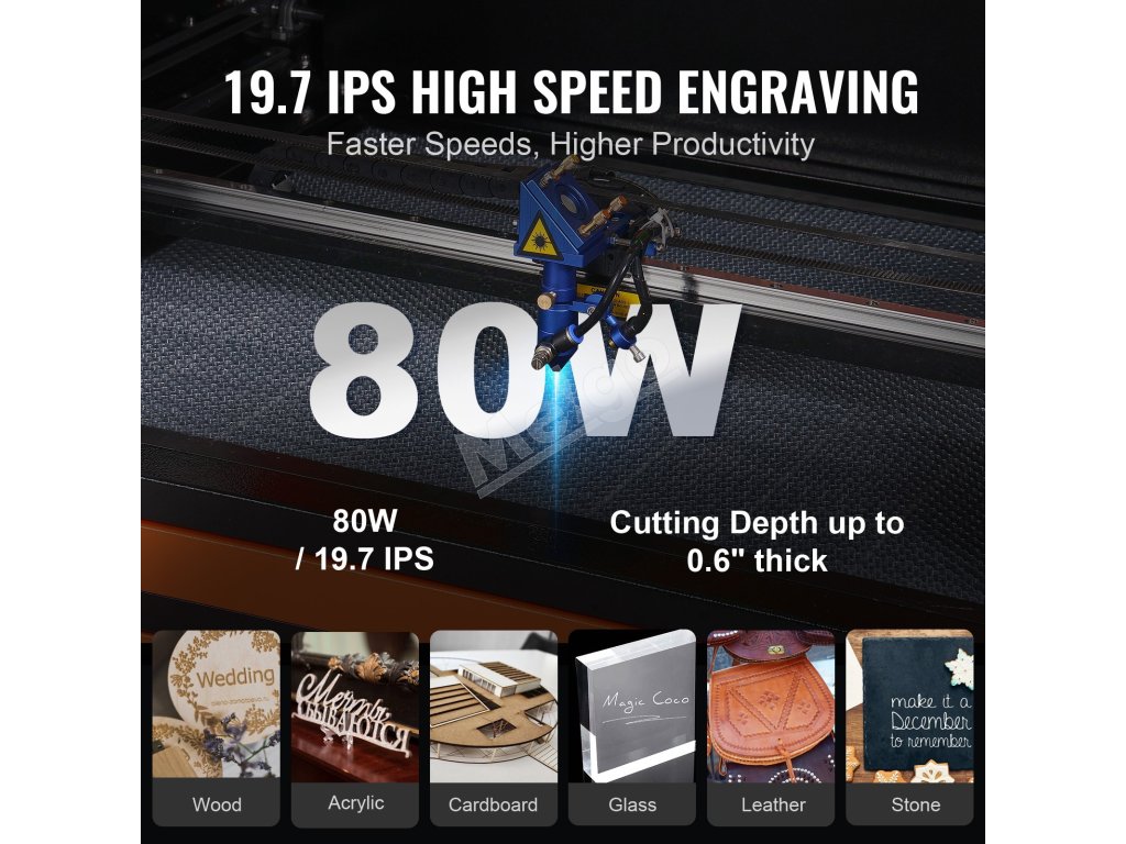 Uveďte svoje kreatívne vízie do života s našou laserovou gravírkou a rezačkou CO₂! Môže sa pochváliť rýchlosťou gravírovania 19,7 ips a gravírovacou plochou 20 x 28 palcov/500 x 700 mm, pričom presne gravíruje ďalšie rôzne materiály a reže hrúbky až do 0,59 palca/15 mm. Pozdvihnite svoj zážitok z tvorby ešte dnes!