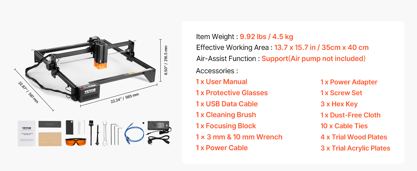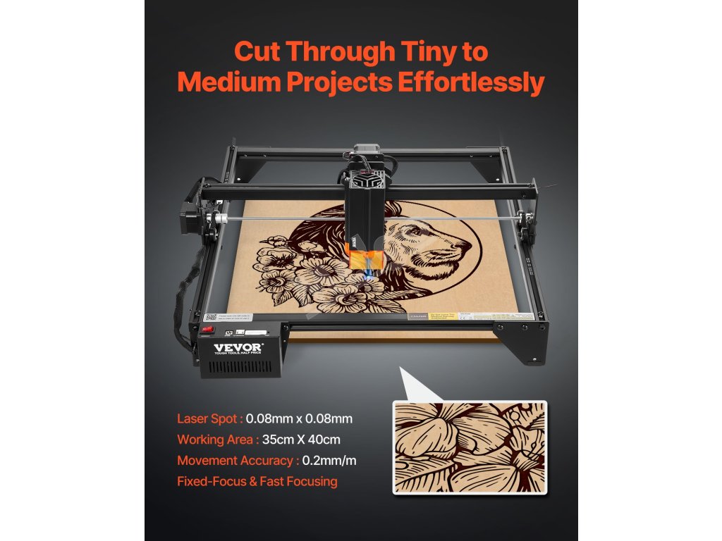 Ak hľadáte užívateľsky prívetivý, vysoko presný laserový gravírovací stroj, tento 20W model má všetko, čo potrebujete. S veľkou pracovnou plochou 13,7 x 15,7 palca (350 x 400 mm), laserovým bodom 0,08 x 0,08 mm, rýchlosťou pohybu 10 000 mm/min je ideálny pre domácich majstrov, remeselníkov, dizajnérov, umelcov atď.