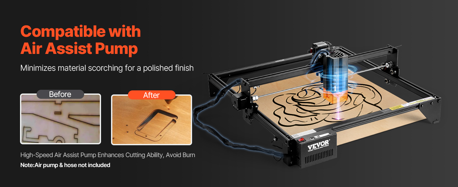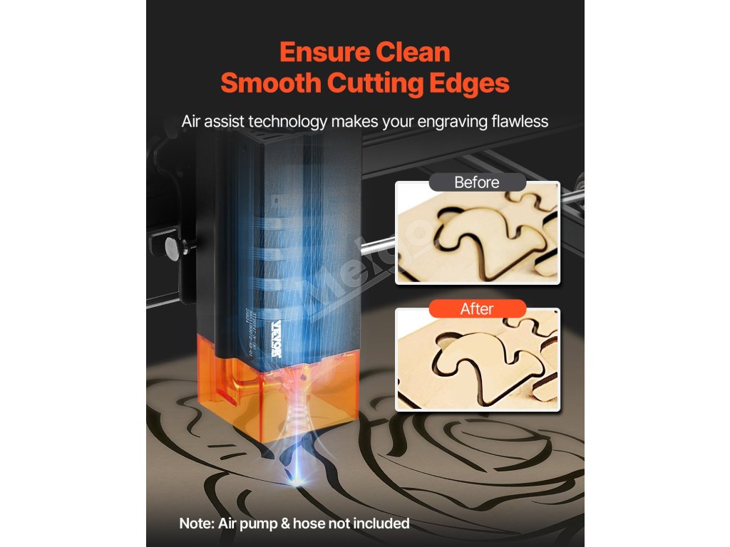 V spojení so vzduchovým asistenčným čerpadlom sa pri gravírovaní znižuje spálenie materiálu a zmena farby vďaka zníženiu teploty. Táto laserová gravírka prináša hladký povrch a živé zachovanie farieb.