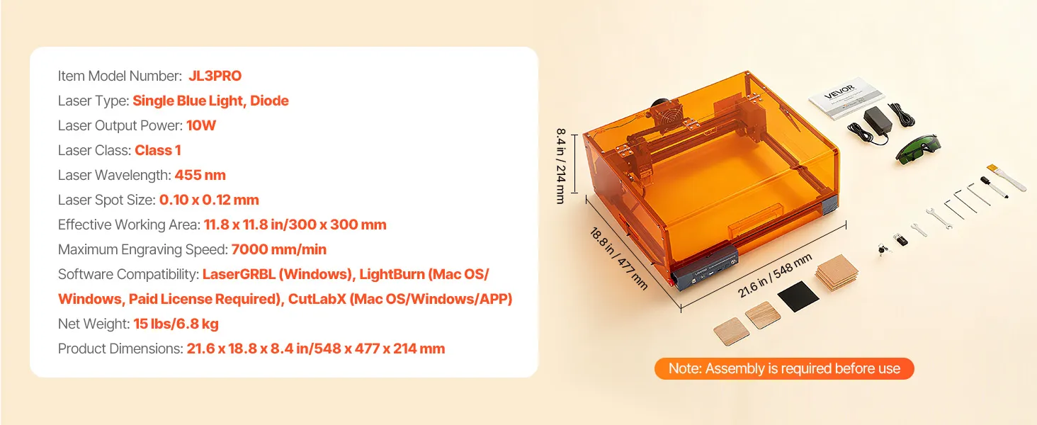 | Kompatibilita so softvérom | LaserGRBL (Windows), LightBurn (Mac OS/Windows, potrebná platená licencia), CutLabX (Mac OS/Windows/APP) |