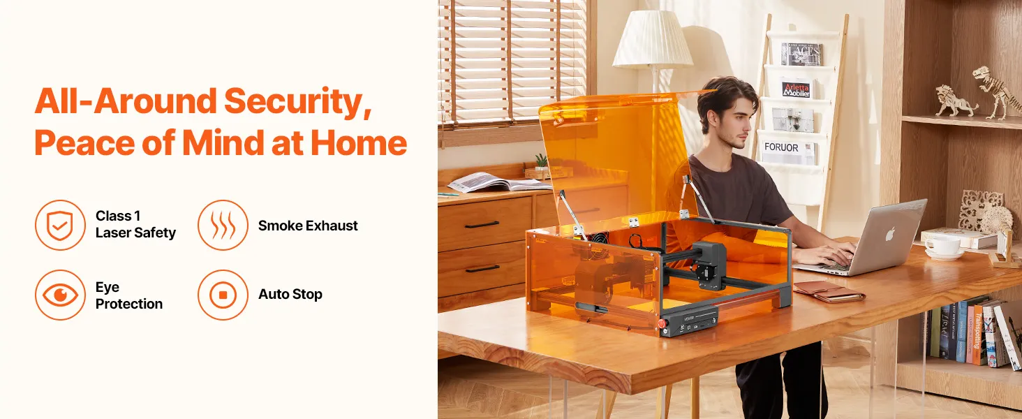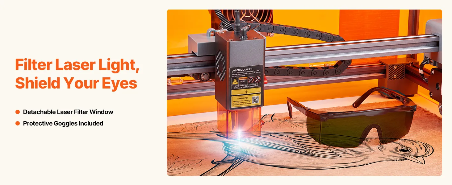 Zablokuje náhodné vystavenie laseru na ochranu očí a pokožky, tento laserový gravírovač na drevo je vhodný najmä do domácností, škôl a tvorivých štúdií.