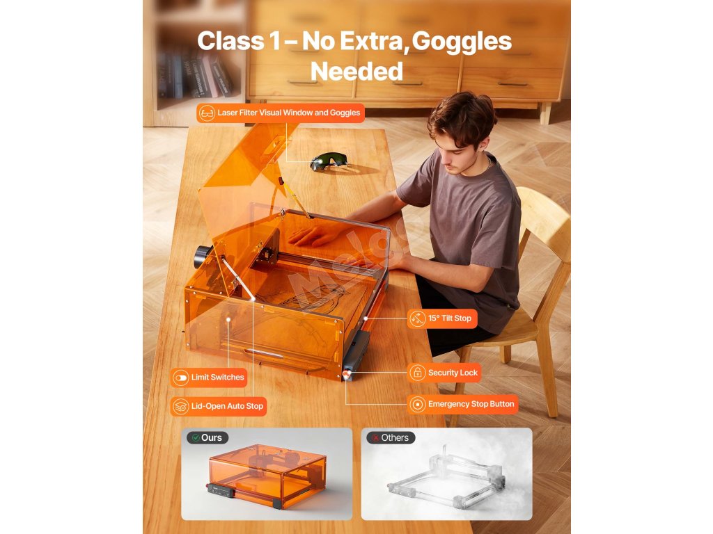 Zablokuje náhodné vystavenie laseru na ochranu očí a pokožky, tento laserový gravírovač na drevo je vhodný najmä do domácností, škôl a tvorivých štúdií.