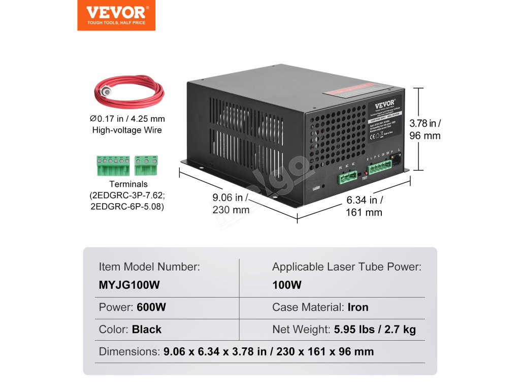 Napájací zdroj CO2 lasera 100W, konštantný prúd, ochrana pri prerušení