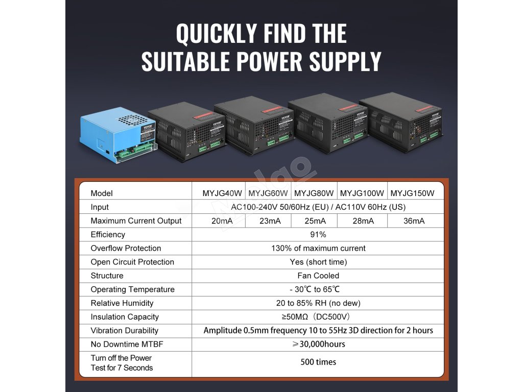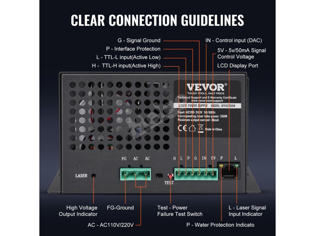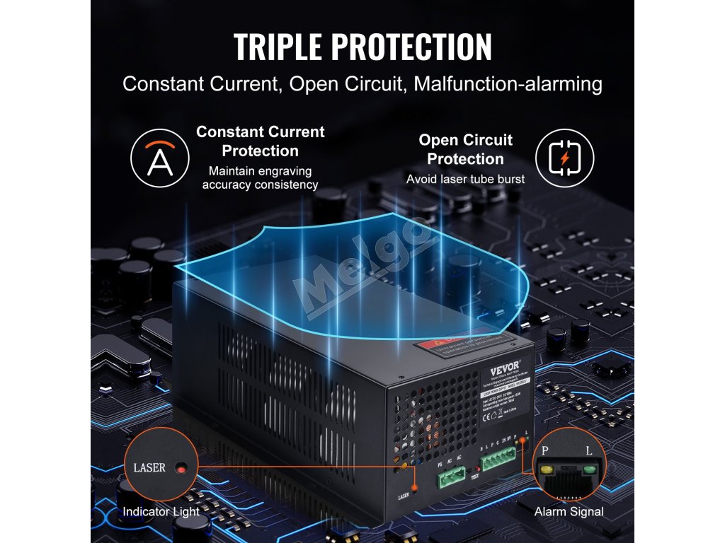 Náš laserový napájací zdroj je kompatibilný s väčšinou laserových trubíc na trhu, má trvanlivú kvalitu a trojitú ochranu (ochrana proti konštantnému prúdu, ochrana proti otvorenému obvodu, ochrana proti korózii), aby spĺňal potreby viacerých remeselných odvetví.