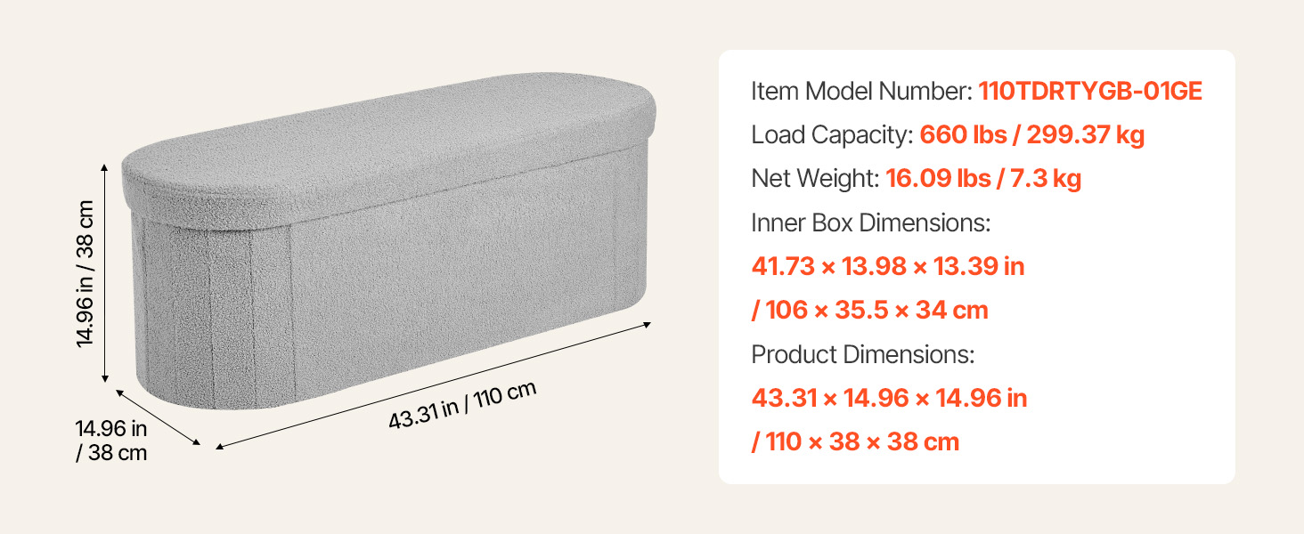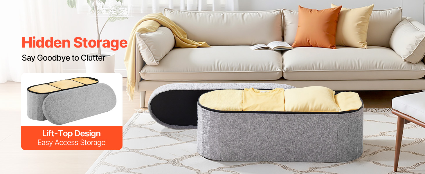 Oválny skladací úložný puf s plyšovým poťahom, podporuje 660 lbs