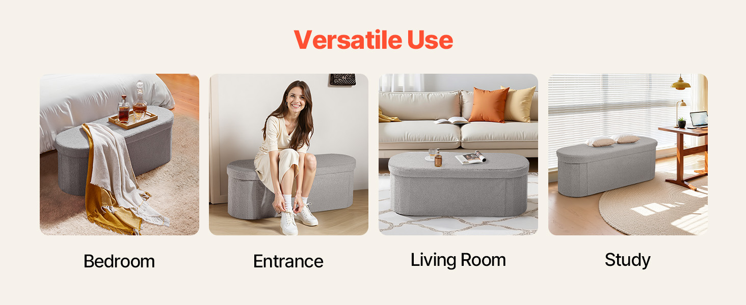 Tento otoman s úložným priestorom je vhodný nielen do spálne, ale hodí sa aj do obývačky, predsiene, šatne alebo vstupnej haly. Slúži ako pohodlné sedadlo aj úložný priestor, čím dodáva vašej domácnosti všestrannosť a praktickú hodnotu.