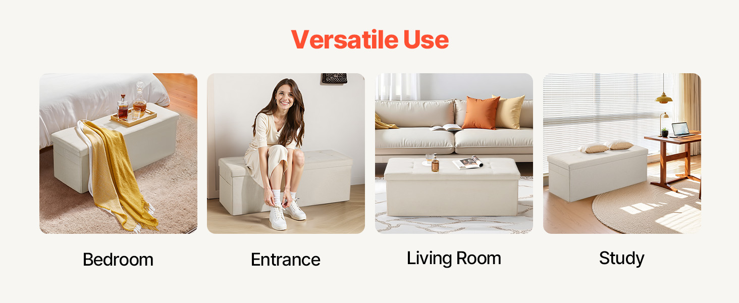 Naša úložná lavica otoman, navrhnutá s výklopným vekom, poskytuje priestranný vnútorný priestor na uloženie posteľnej bielizne, kníh alebo každodenných potrieb. Do jej dvoch bočných vreciek možno uložiť drobné predmety, ako sú diaľkové ovládače alebo telefóny. Táto úložná lavica nielen šetrí miesto a umožňuje rýchlo nájsť to, čo potrebujete.