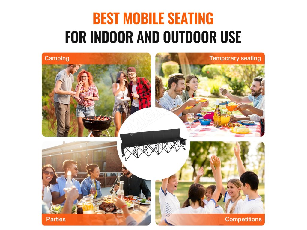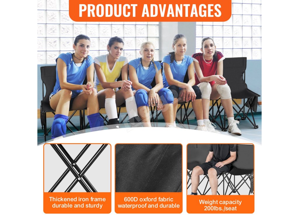 Táto prenosná športová lavička je všestranná a vhodná pre všetky vekové kategórie. Pri športových podujatiach, ako je futbal alebo basketbal, ponúka miesto na odpočinok pre športovcov a hráčov a je tiež skvelá na vonkajšie aktivity, cestovanie a kempovanie.