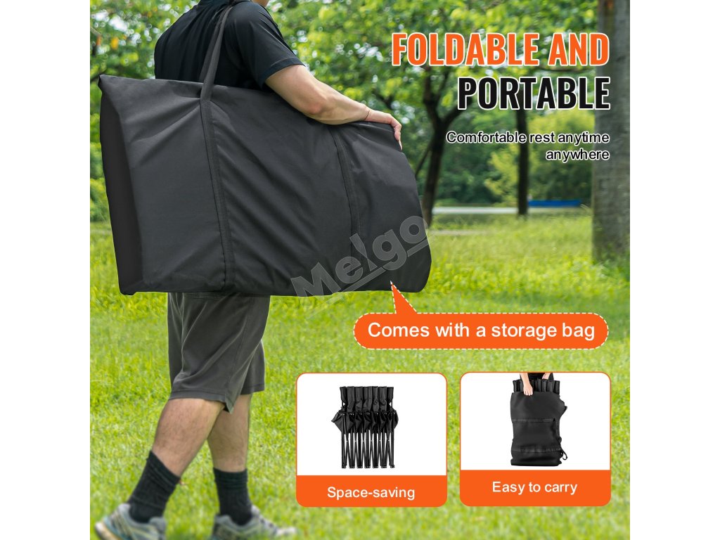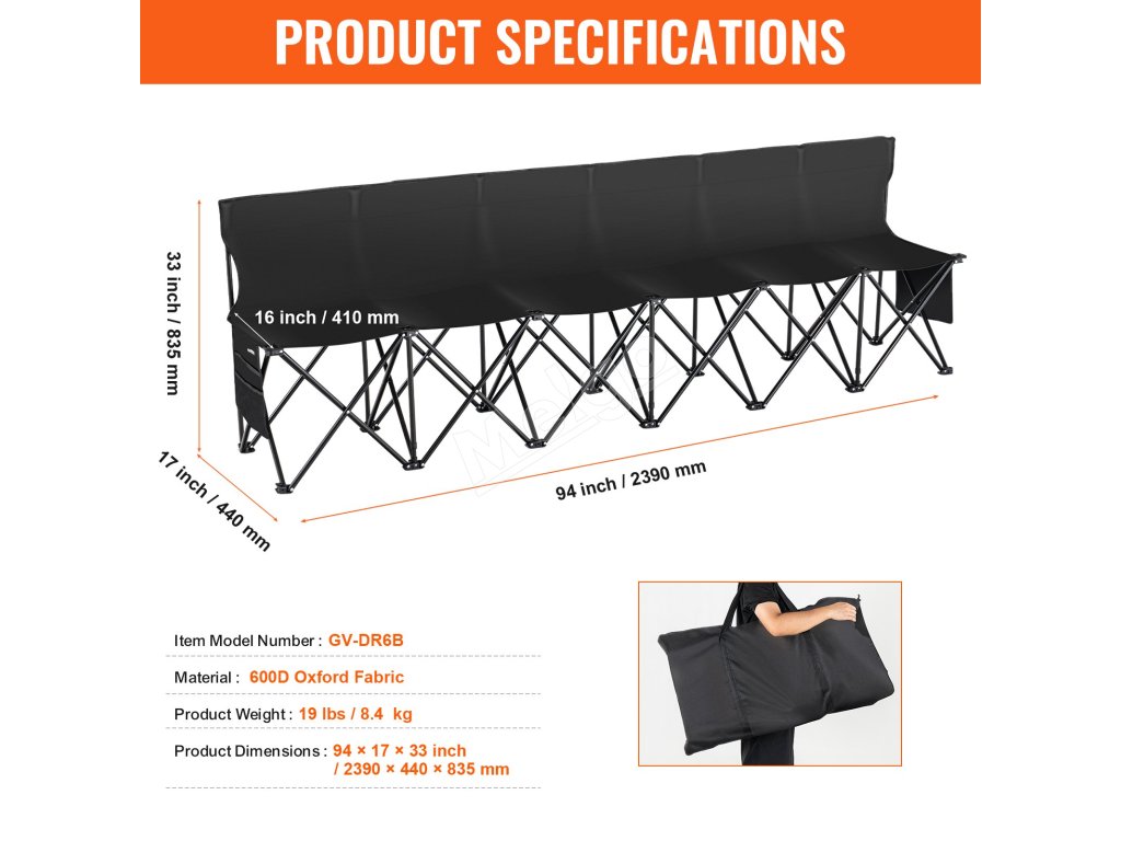 Tento výrobok je vyrobený z odolnej tkaniny 600D oxford so zosilnenými, vystuženými podpornými tyčami na zvýšenie pevnosti a stability. Vďaka skladaciemu dizajnu je ideálna na športové podujatia, večierky, kempovanie v prírode alebo na akúkoľvek príležitosť, pri ktorej potrebujete sedenie pri postrannej čiare.