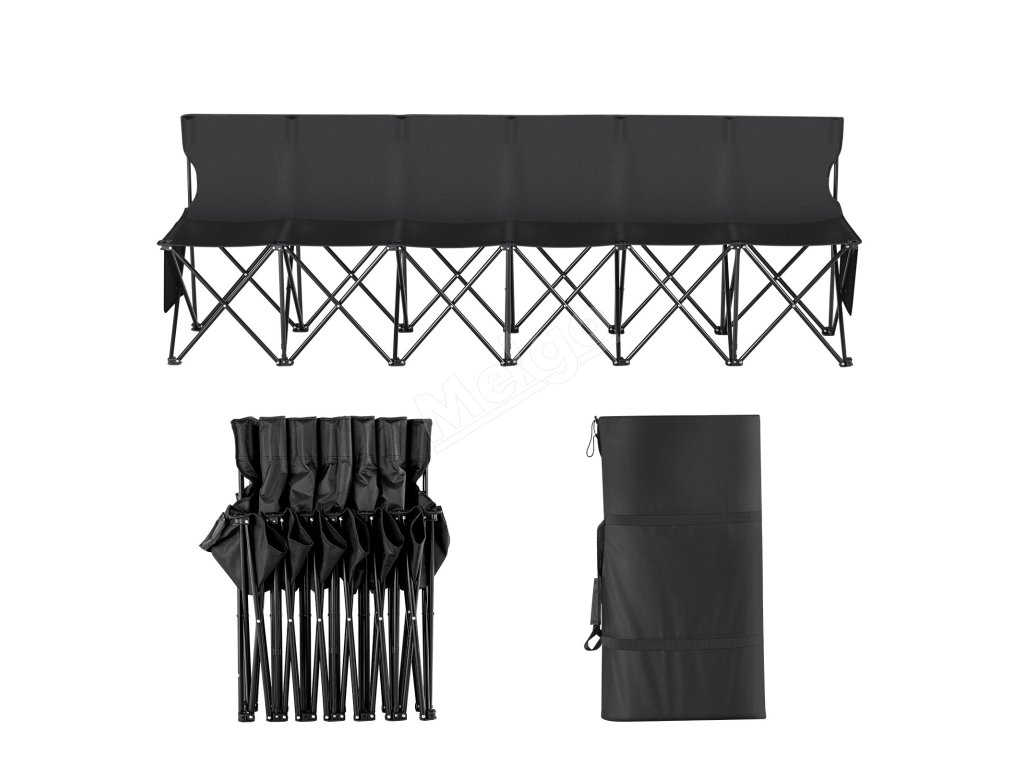 Prenosná skladacia lavička 6 miest s opierkou, bočnými vreckami