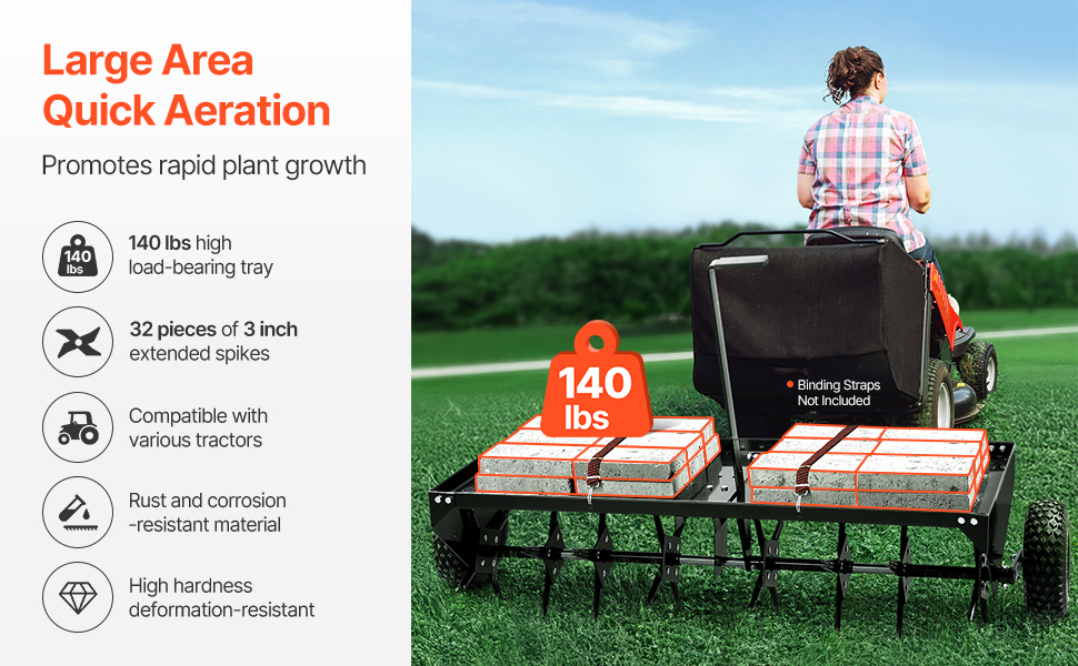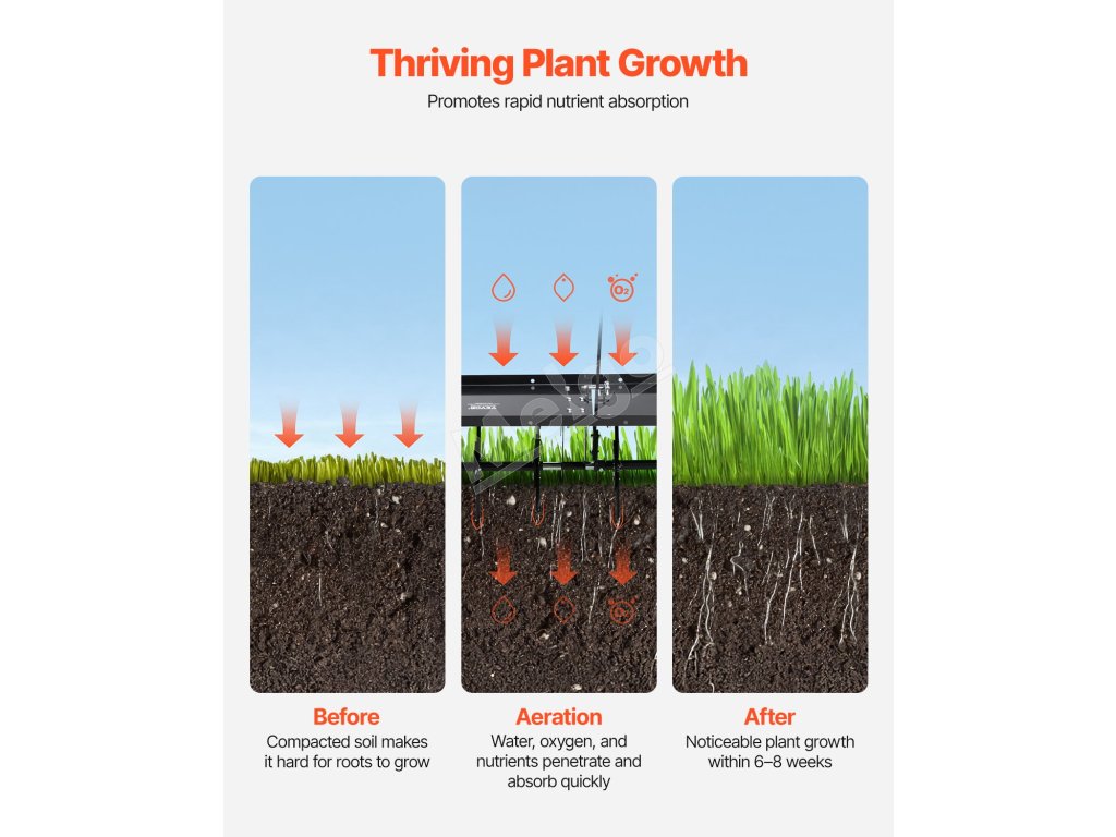 Tento vlečný prevzdušňovač je vyrobený z vysokopevnostných materiálov a má precízny dizajn. Hlboko preniká do pôdy, zvyšuje hladinu kyslíka a podporuje dýchanie koreňov a vstrebávanie živín pre zdravší a zelenší trávnik.