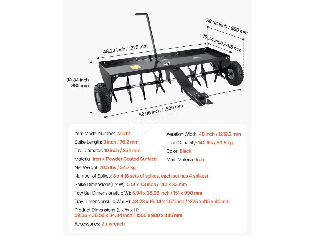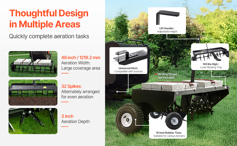 Ťahaný aerátor 48-inch s univerzálnym závesom a striedavými hrotmi