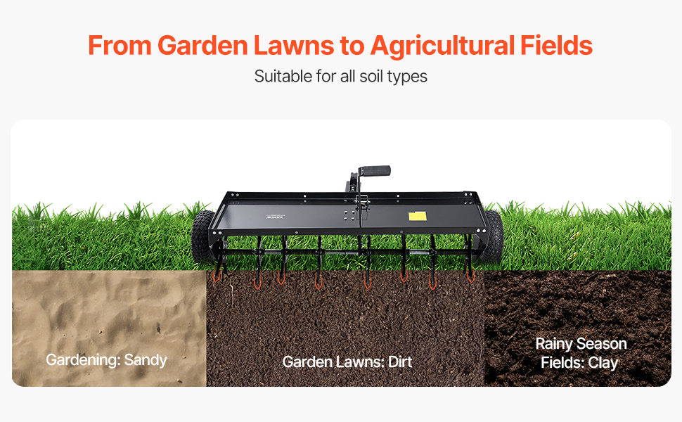 Tento ťahaný zástrčkový prevzdušňovač je vhodný pre rôzne typy pôdy. Či už ide o domáce záhradkárstvo alebo veľkoplošné poľnohospodárstvo, poskytuje ideálne riešenie na zlepšenie štruktúry pôdy.