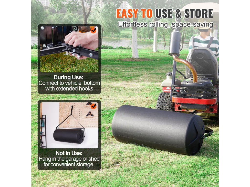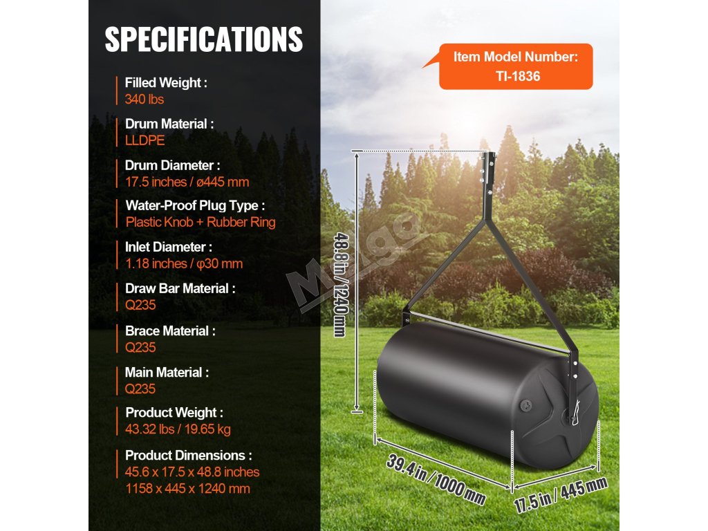 Záhradný valec za traktor a atv 400lbs, lldpe bubon, oceľový rám