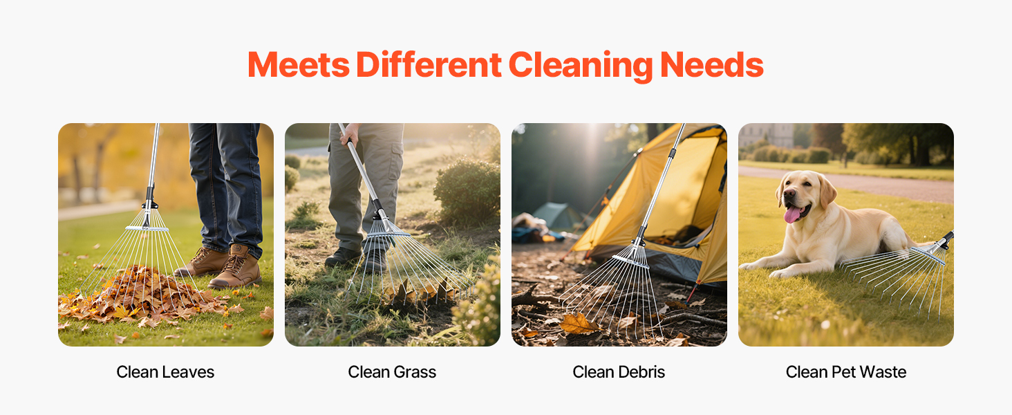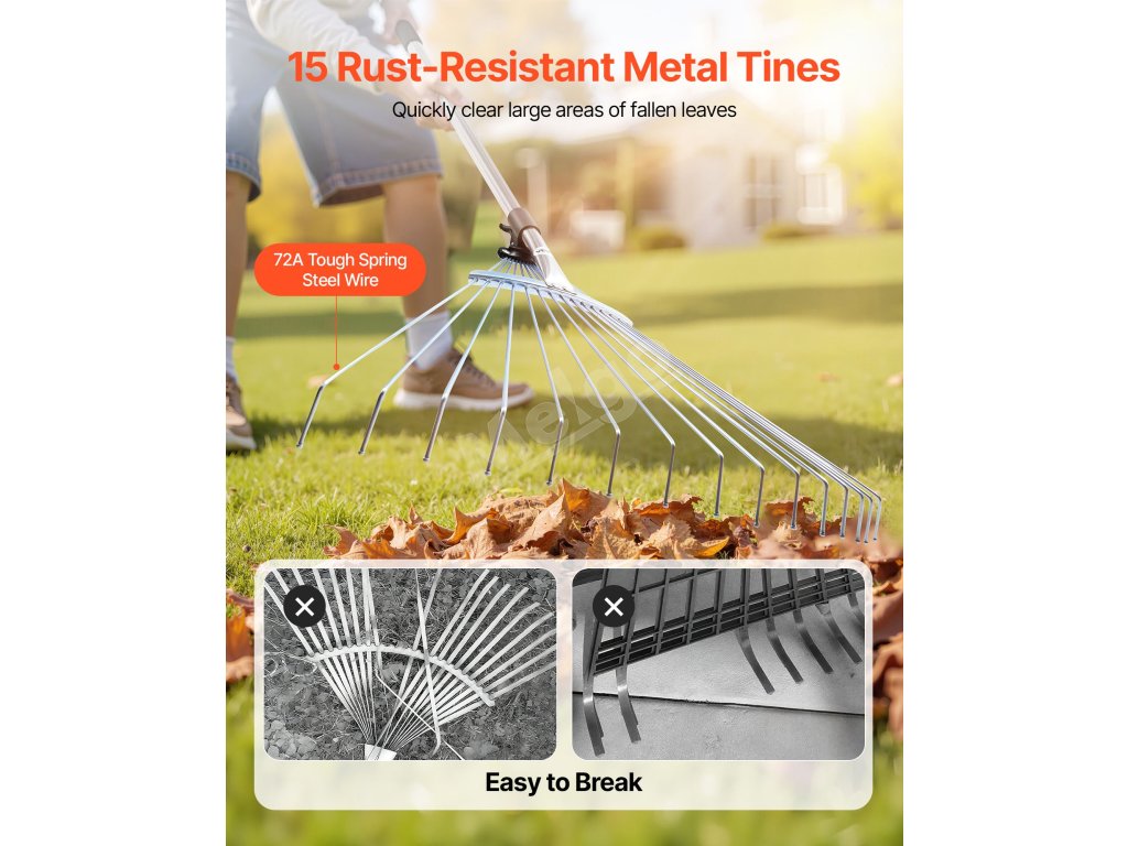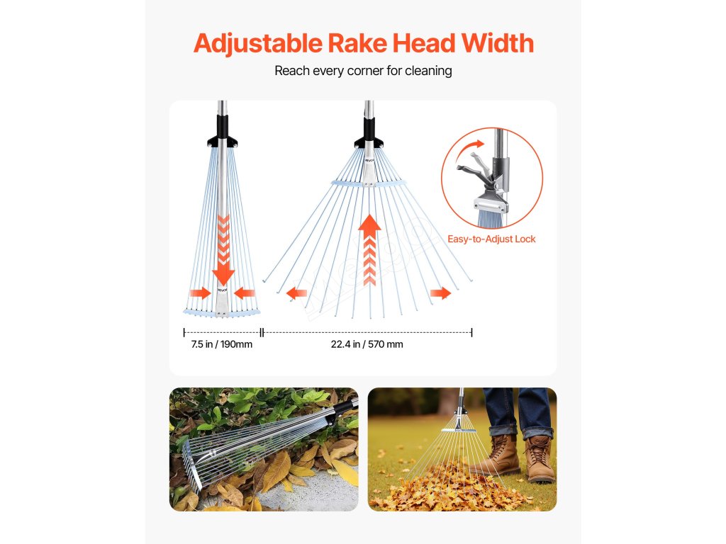 Tieto nastaviteľné hrable sú ideálne na čistenie lístia, trávy, mulča a dokonca aj odpadu po domácich zvieratách. Je to váš nástroj na efektívnu údržbu trávnika a záhrady pri viacerých úlohách.