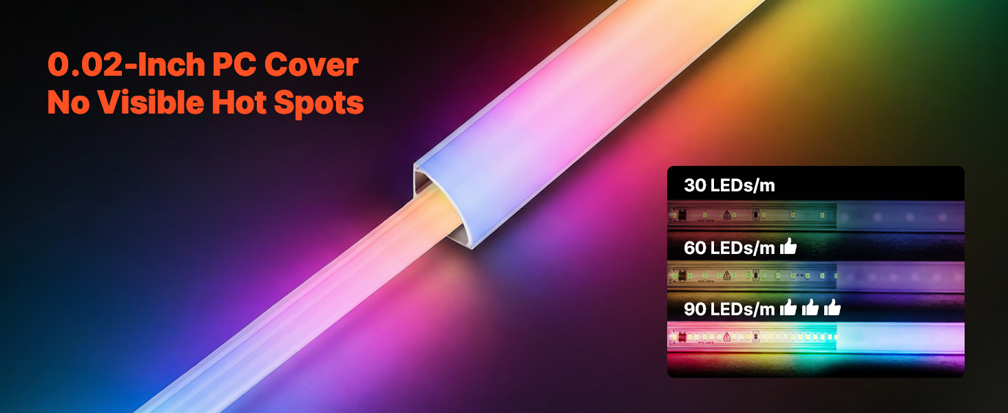Kanál difúzora LED pásika používa 0,02 palca hrubý PC kryt, ktorý rovnomerne rozptyľuje svetlo, redukuje ostré svetlé body a je šetrný k očiam. Vytvára hladkú, mäkkú a príjemnú atmosféru osvetlenia.