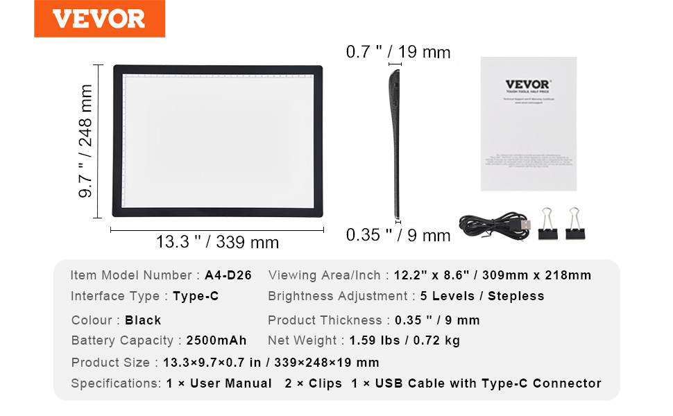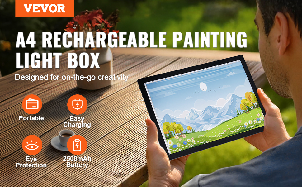 VEVOR A4 Dobíjací svetelný box na maľovanie kdekoľvek a kedykoľvek