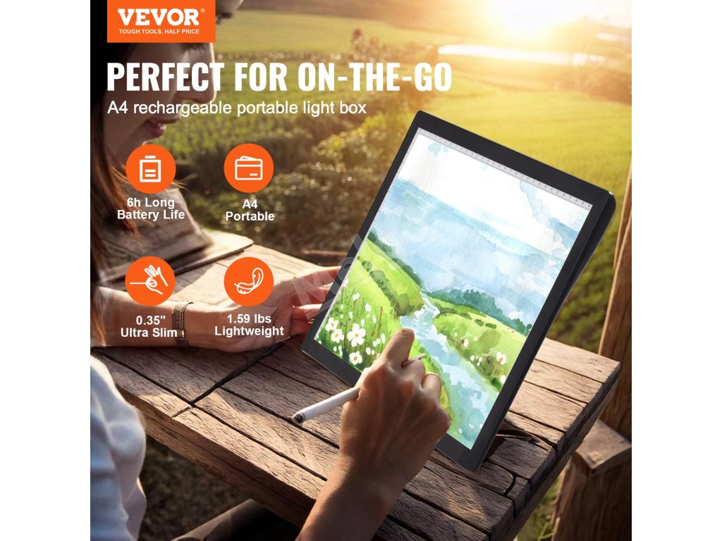 VEVOR A4 Dobíjací svetelný box na maľovanie kdekoľvek a kedykoľvek